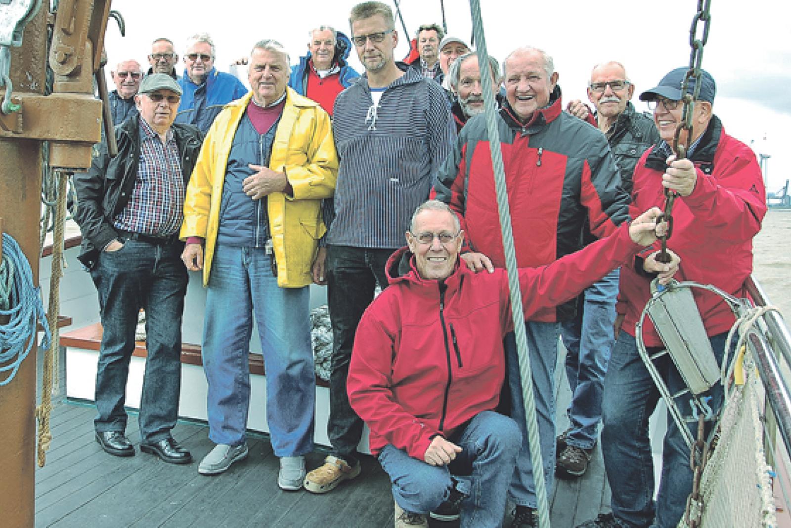 Die Männer der Stapelmoorer Gymnastik-Gruppe fuhren jetzt nach Ditzum, um von dort aus in See zu stechen. Der Kutter »Hinderk« war für die Gruppe reserviert für eine Ausflugsfahrt mit Krabbenfischen.