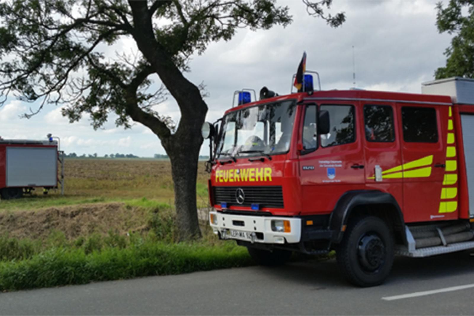 Die Ortsfeuerwehren Dollart und Bunde rückten zur Brandbekämpfung auf dem Stoppelfeld aus.