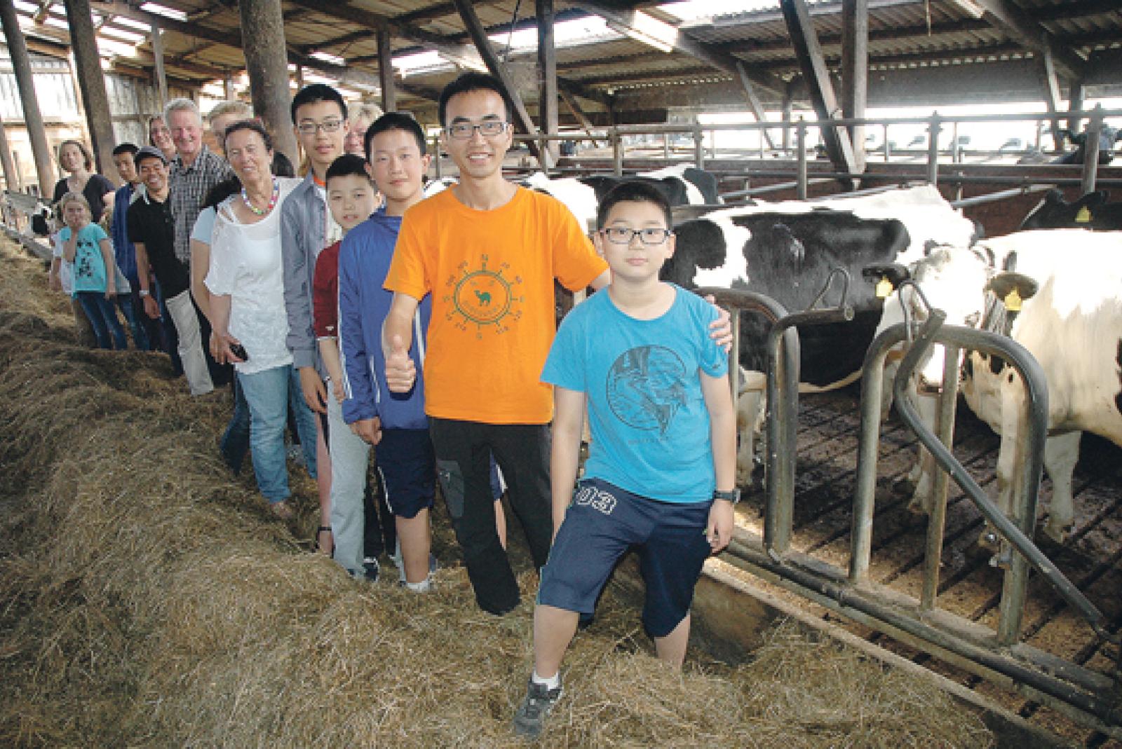 Junge Chinesen erkunden Hof in Wymeer