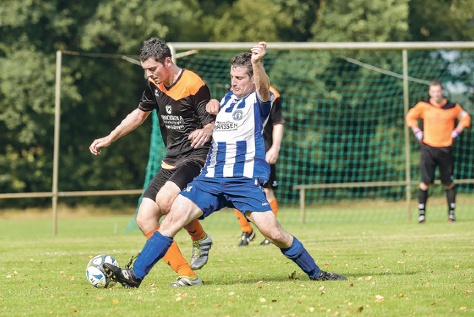 Kein Vorbeikommen gab es für die Wymeerster um Dennis Klock an den Möhlenwarfern um Uwe Barth. Die Gäste waren klar besser. © Foto: Bruins
