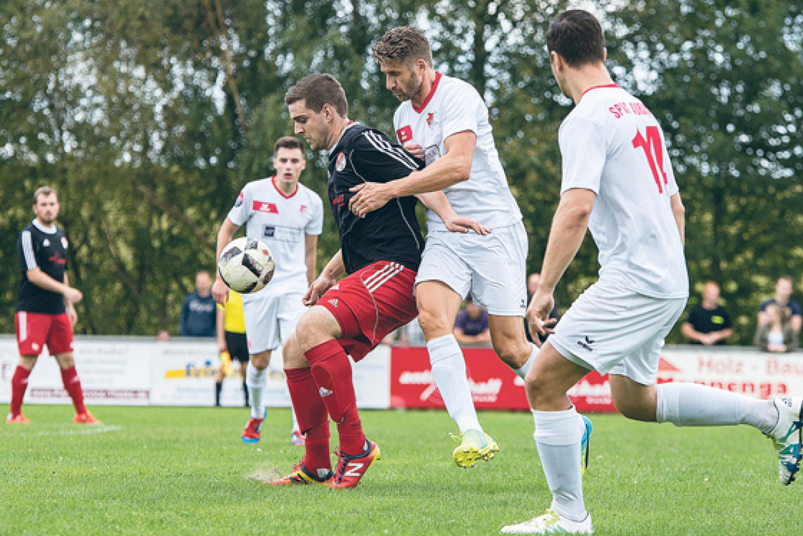 Entschlossenheit in den Zweikämpfen wollen die Jemgumer (hier: Andre Karper im Spiel gegen Aurich) beim Heimspieldoppelpack am Wochenende zeigen. © Foto: Mentrup