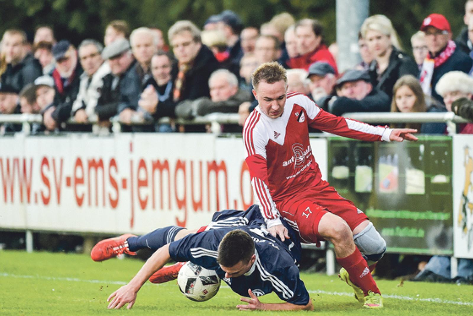Das Bild trügt: Nicht die Jemgumer um Ole Nitters (rechts) rangen die Bunder nieder. Am Ende behielten die Gäste um Frank Wöste deutlich mit 4:1 die Oberhand. © Fotos: Bruins