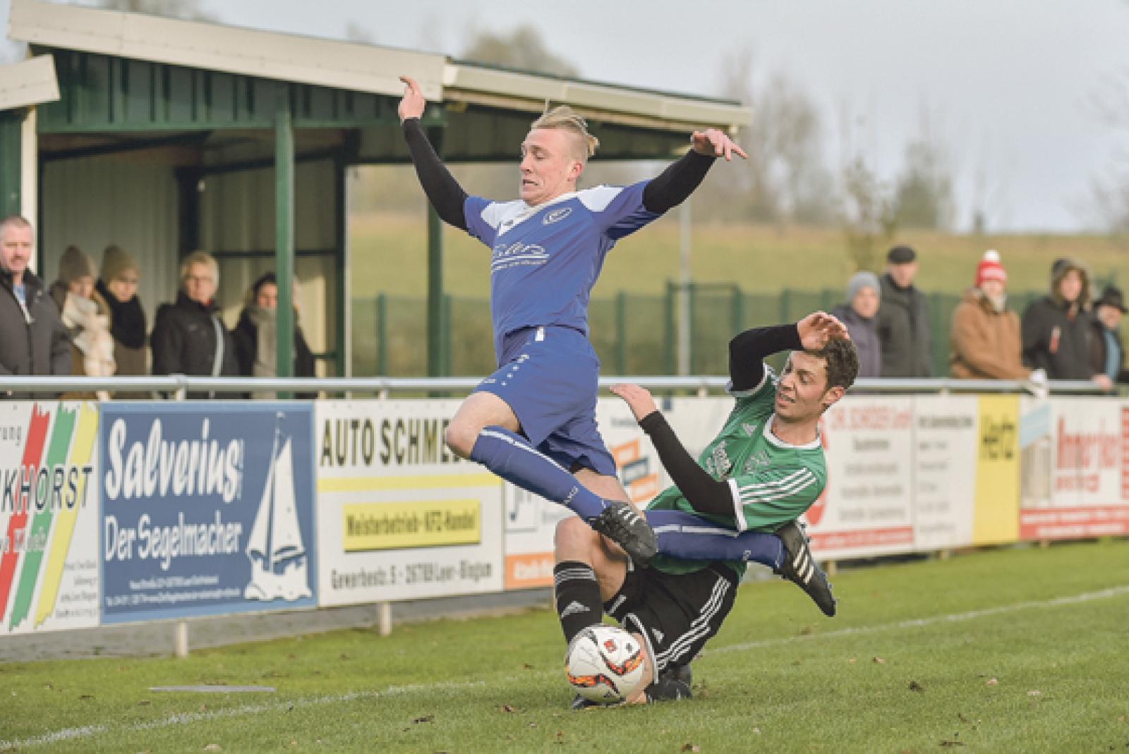 Der Einsatz stimmte bei den Bingumern um Kevin Kok (hier gegen Süderneulands Jannes Grünhoff), allerdings reichte es nicht für einen Zähler.  © Fotos: Bruins