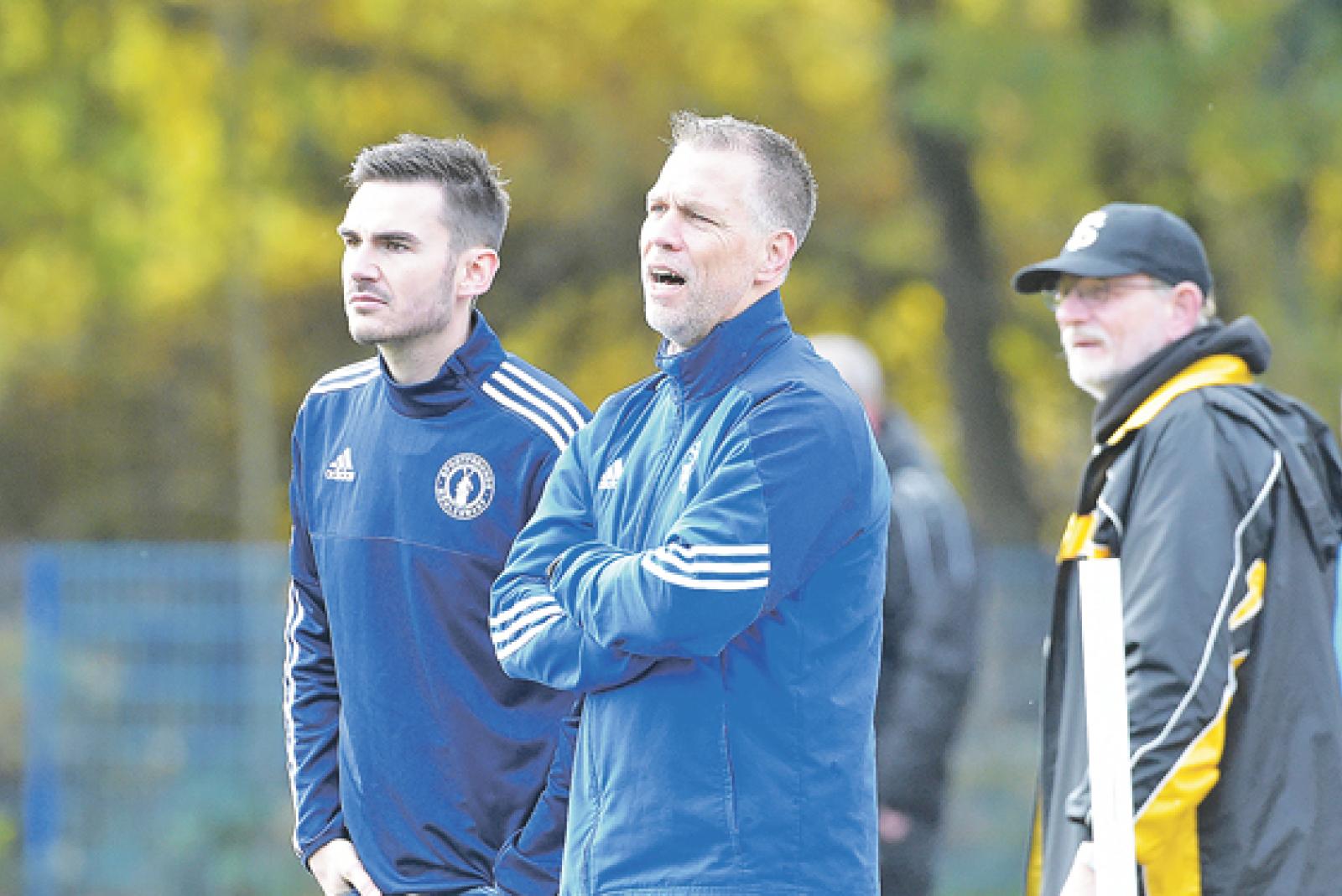 Ronnie Beukema (r.) ist nicht mehr Trainer der Sportfreunde Möhlenwarf II. Für Domenico Drechnowicz und die Mannschaft ist das ein schwerer Schlag. © Foto: Bruins