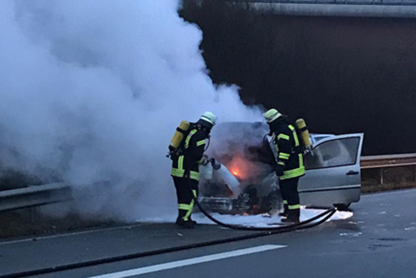 VW Polo brennt auf der Autobahn