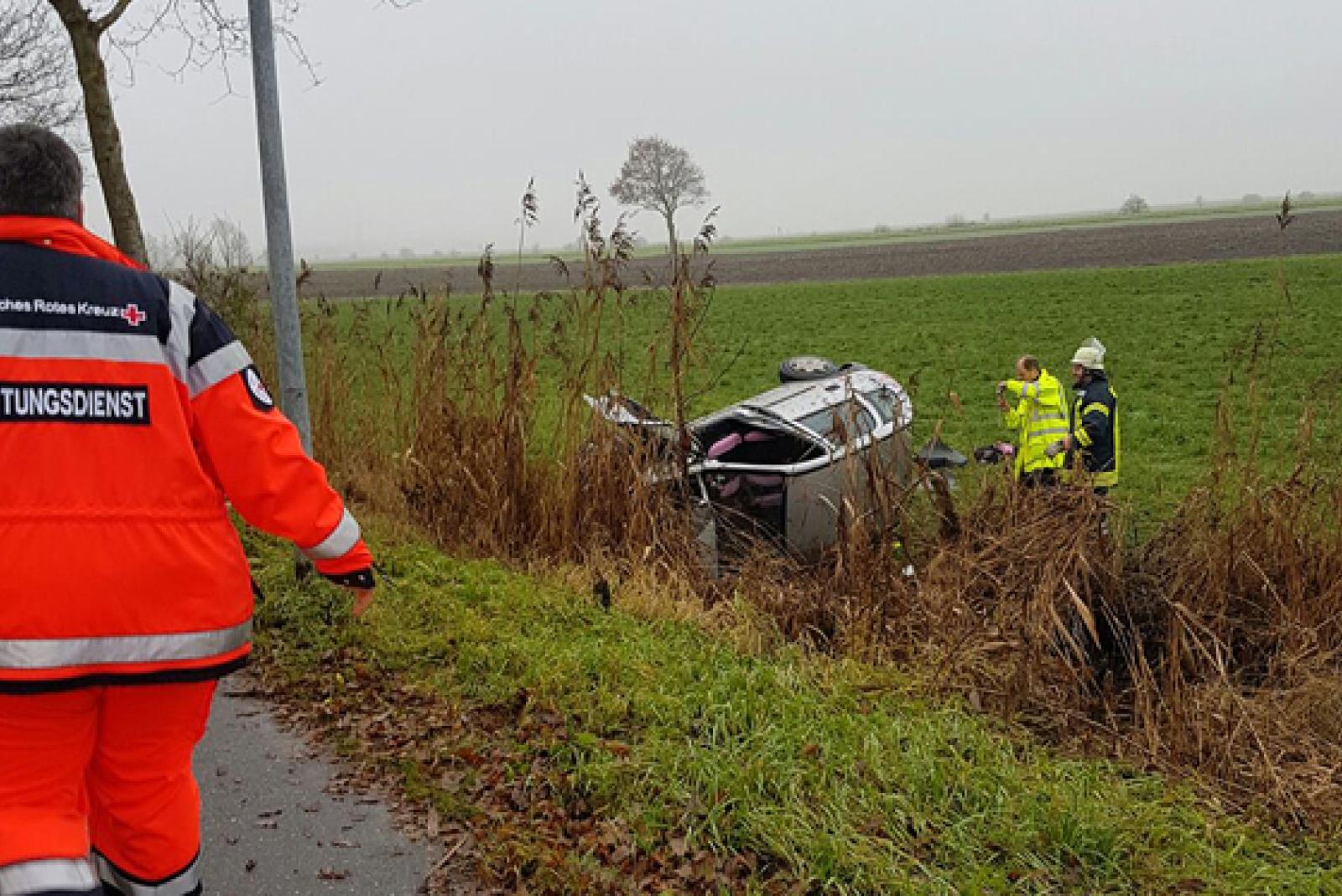 Die Regionalleitstelle alarmierte zunächst den Rettungsdienst, einen Notarzt und die Polizei. Wenig später wurden dann auch die Feuerwehren aus Wymeer-Boen und Bunde alarmiert. Die Einsatzkräfte erreichten die Unfallstelle, die sich auf einem eigentlich abgesperrten Teilstück der Straße befand, binnen weniger Minuten.