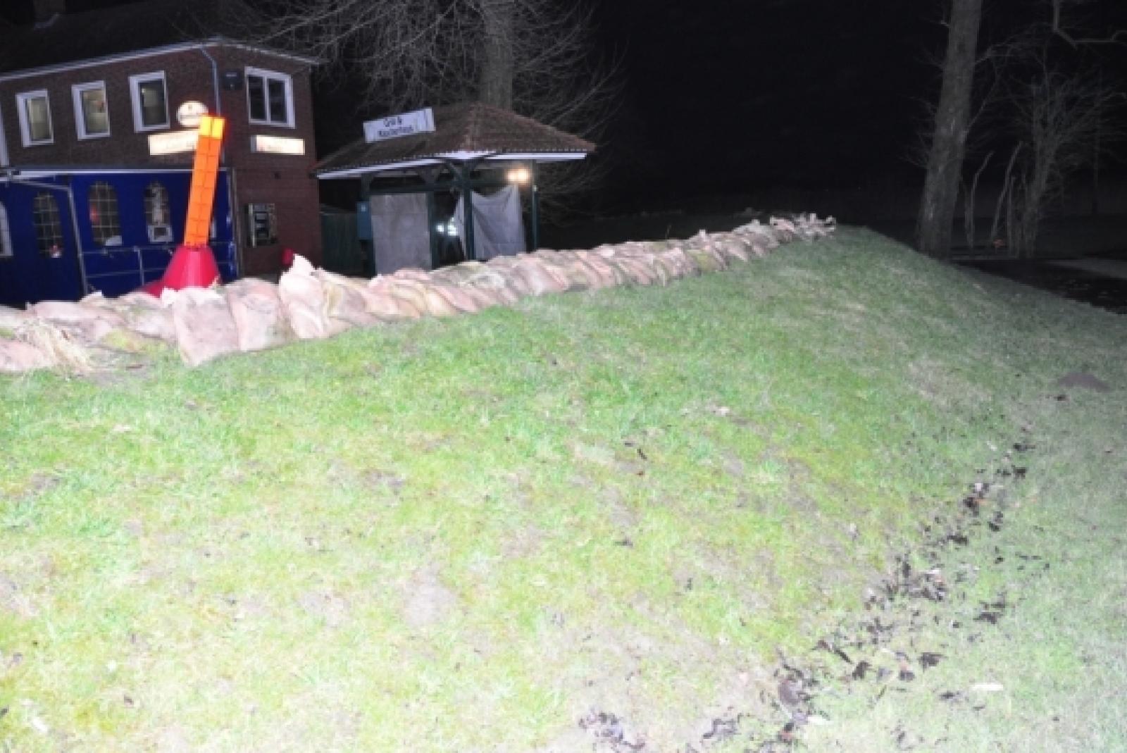 Die Feuerwehr Jemgum war am Mittwochabend am Hafen im Einsatz, um das Restaurant »Luv up« vor einer erneuten Überflutung zu schützen.
