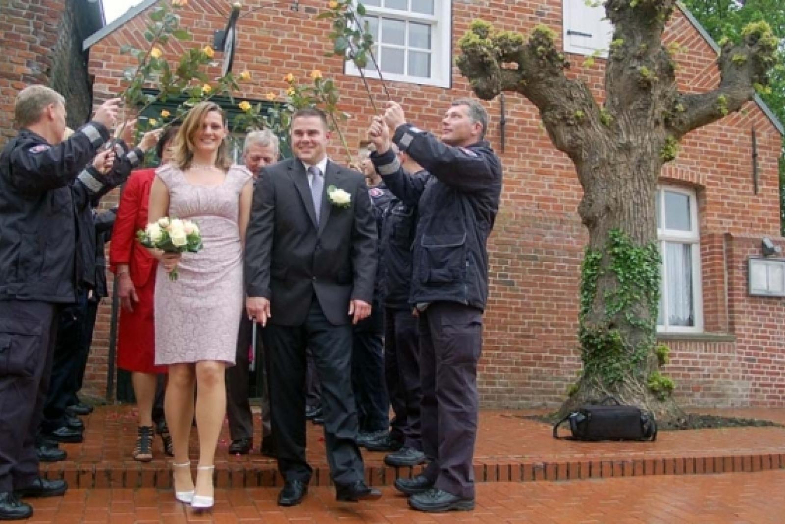 Frauke Denekas (26) aus Ditzumerhammrich und Jan-Raimund Bruhns (33) aus Ditzum sind das erste Brautpaar, das sich im Sielhus in Jemgum das Ja-Wort gegeben hat.