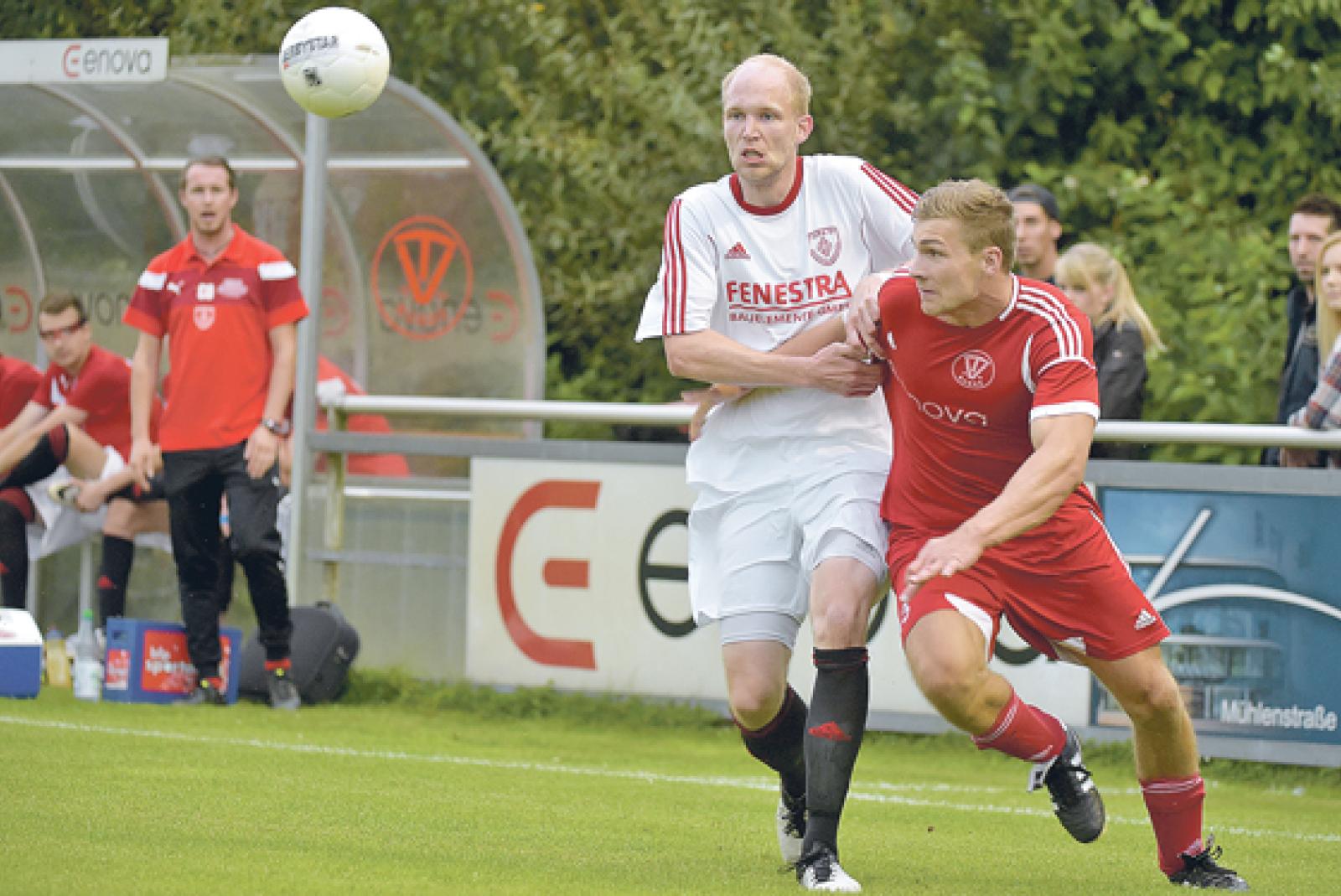 Ein packendes Kreisderby lieferten sich die Bunder um Eike Schmidt (r.) mit Westrhauderfehn um Tobias Fischer im Hinspiel. Heute treffen beide Teams erneut aufeinander. © Foto: Bruins