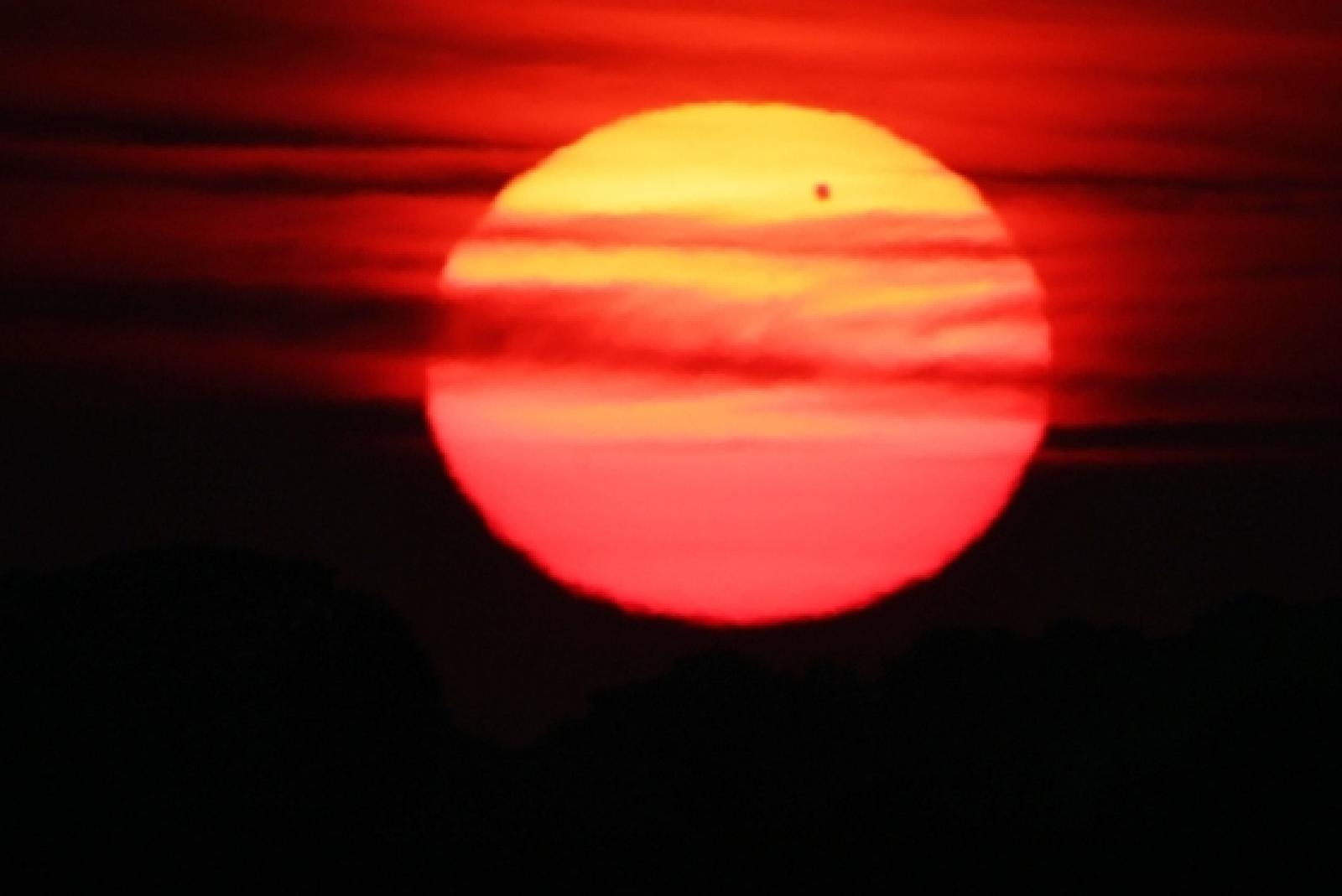 Den Venustransit hat Stefan Meyer am Mittwoch um 5.10 Uhr bei Sonnenaufgang im Weenermoorer Hammrich beobachtet und fotografiert. © Foto: Meyer