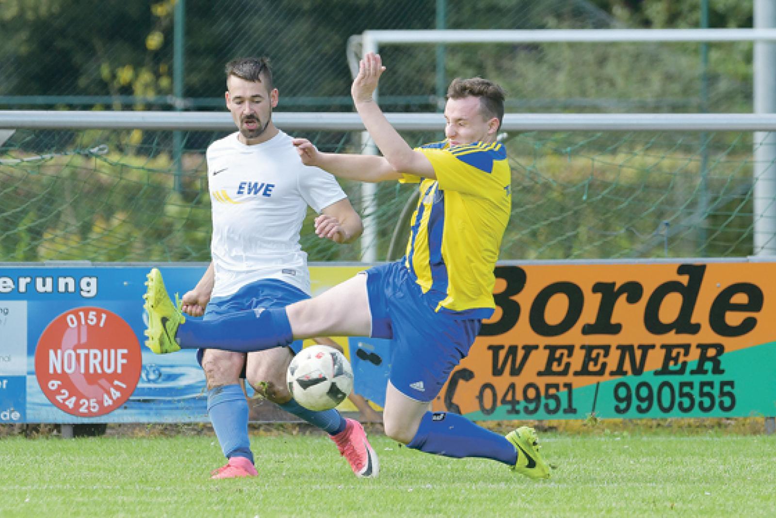 Nach einem guten Start im Sparkassenpokal Ostfriesland musste der TuS Weener II um Spielertrainer Simon Hoogendoorn (vorn) nun eine 0:2-Niederlage wegstecken. © Foto: Bruins