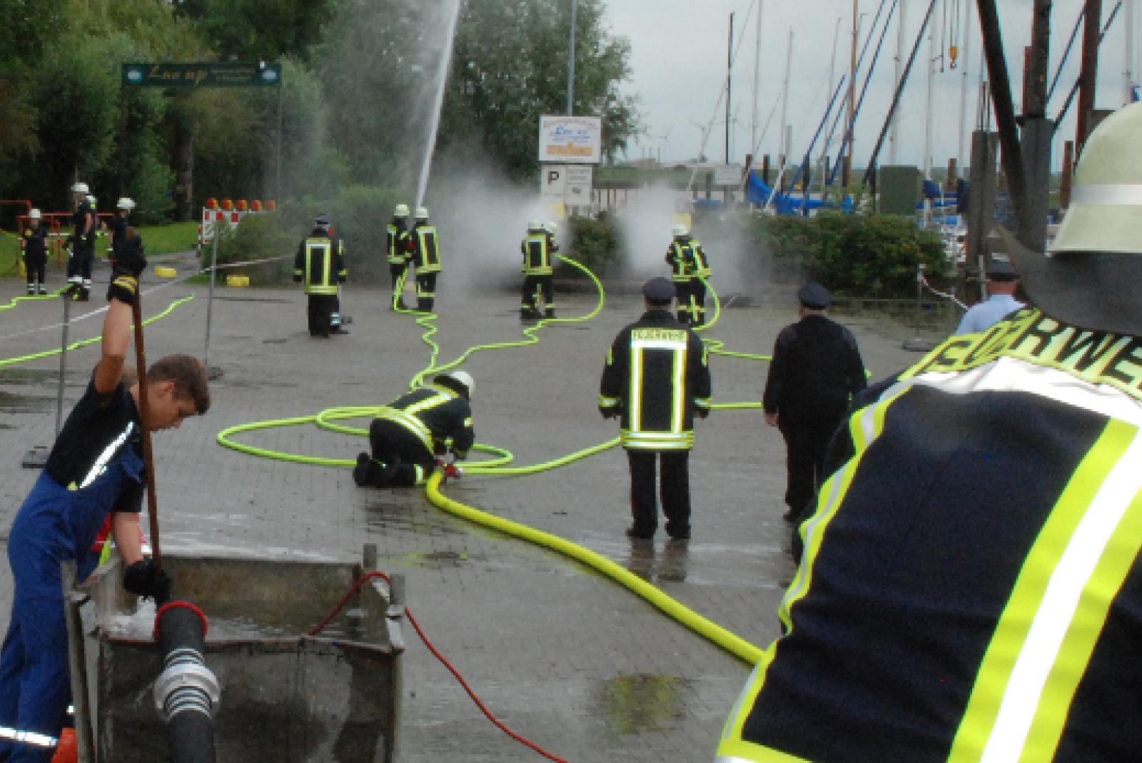 Die Schnelligkeitswettkämpfe der Freiwilligen Feuerwehren anlässlich des Jemgumer Müggenmarktes sind jedes Jahr am Sonnabend ein beliebter Treffpunkt der Wettkampfgruppen und der Zuschauer. Die Wehr Jemgum als Gastgeber hat mit dem Hafengelände und dem Deich als Logenplatz ...