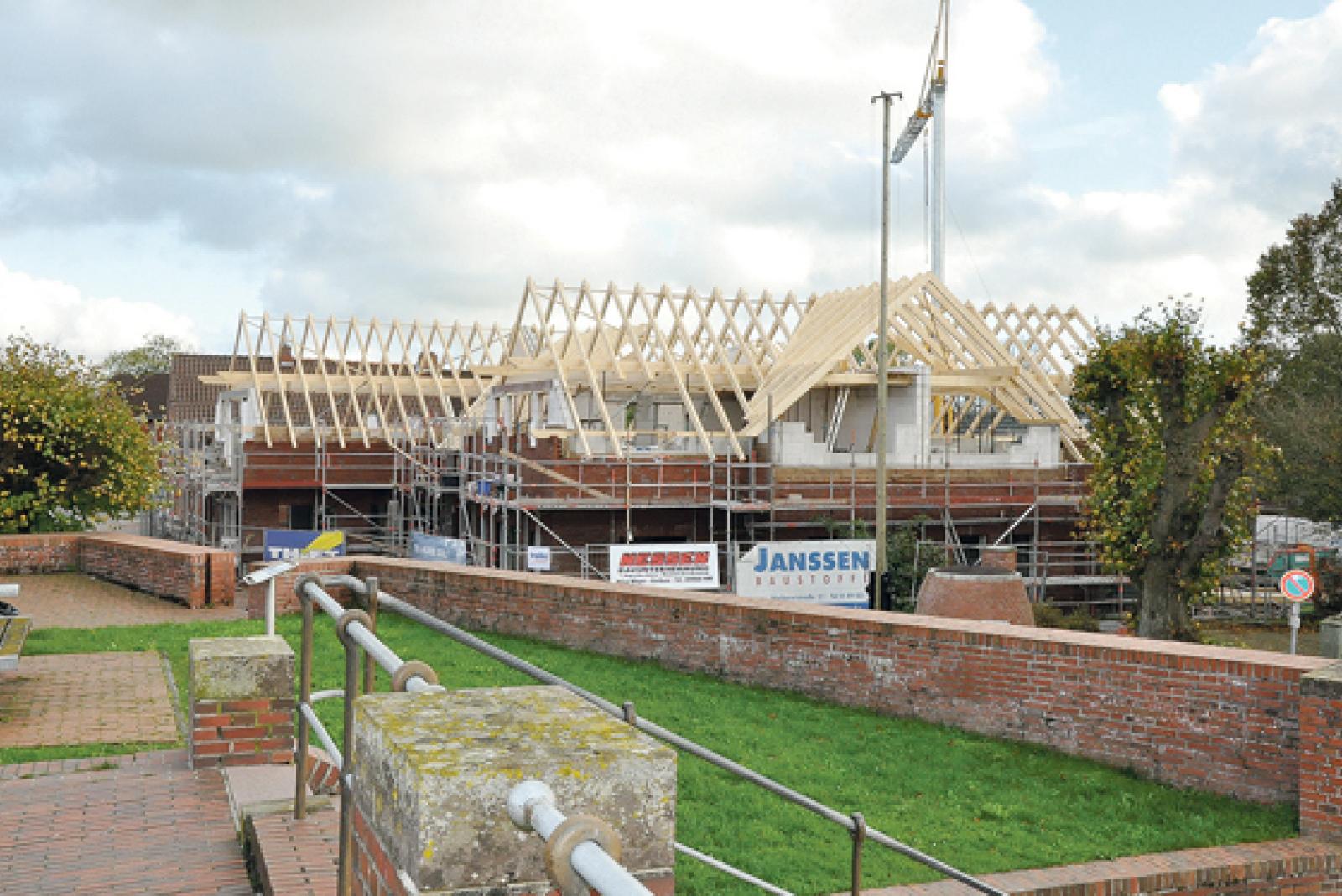 Der »Ditzumer Hof« am Standort des abgerissenen »Gasthof Rheiderland« neben dem Hermann-Tempel-Platz im Ortskern nimmt Gestalt an.