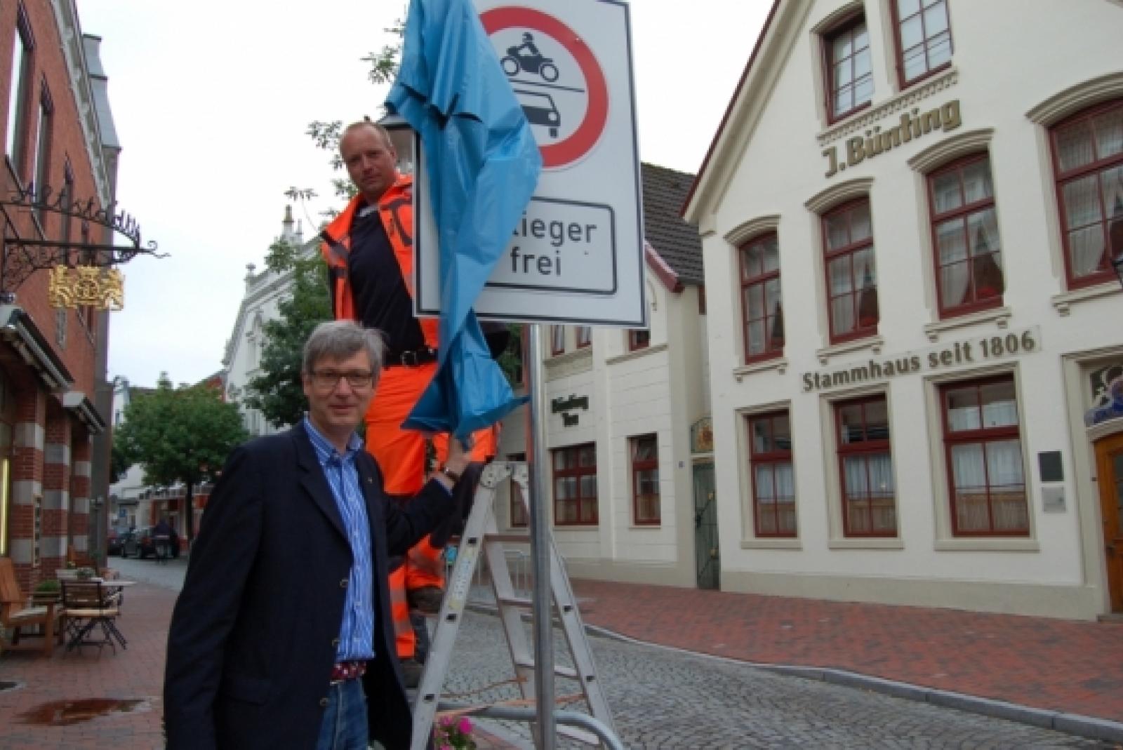 Die Brunnenstraße in Leer ist jetzt zwei Monate lang für den motorisierten Durchgangsverkehr gesperrt. Mehr »Aufenthaltsqualität«, wie es im »Planer-Deutsch« heiße, soll in der Straße geschaffen werden, so Stadtbaurat Carsten Schoch. Er enthüllte gestern ...