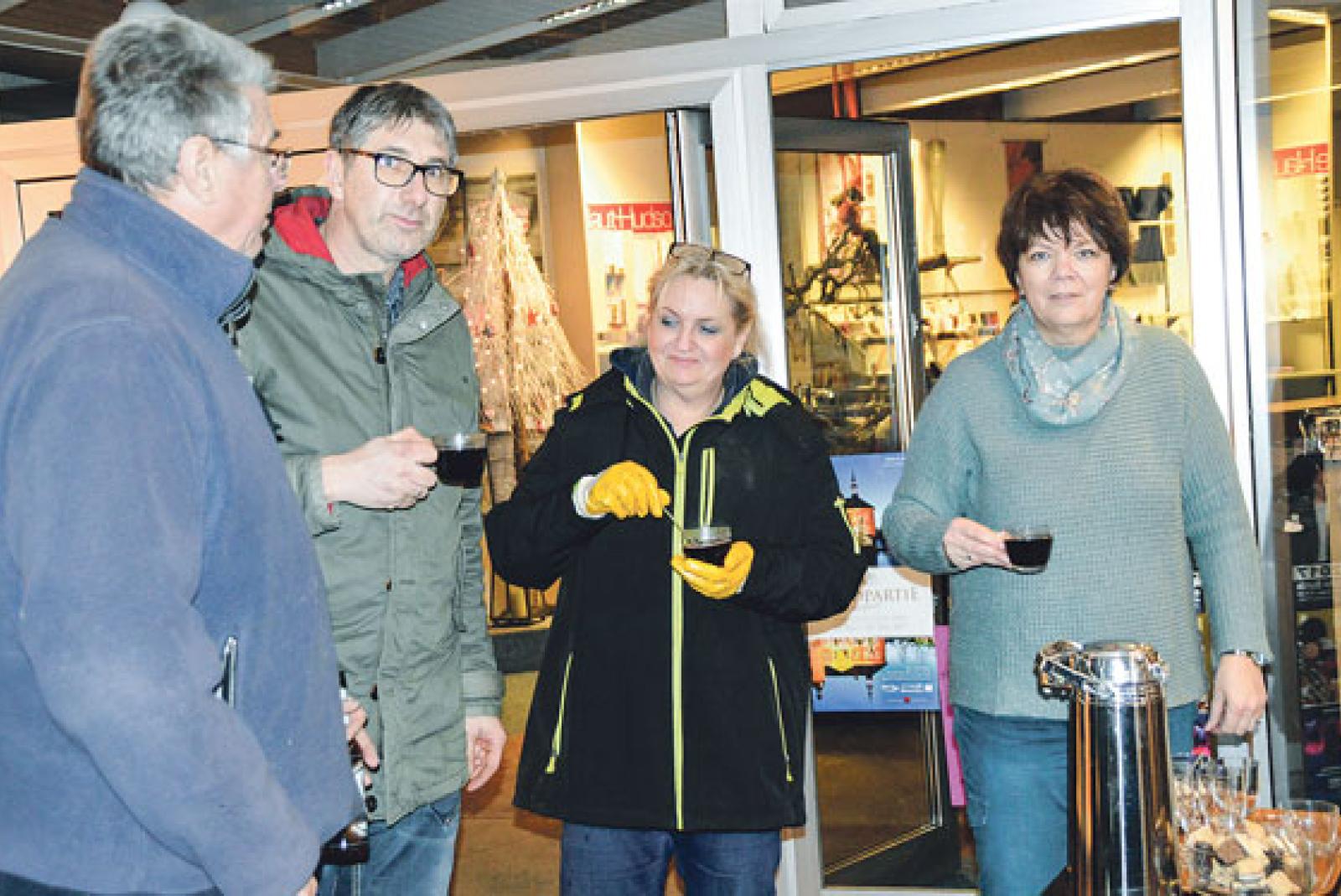 Große und kleine Bürger bringen Weihnachtsschmuck an