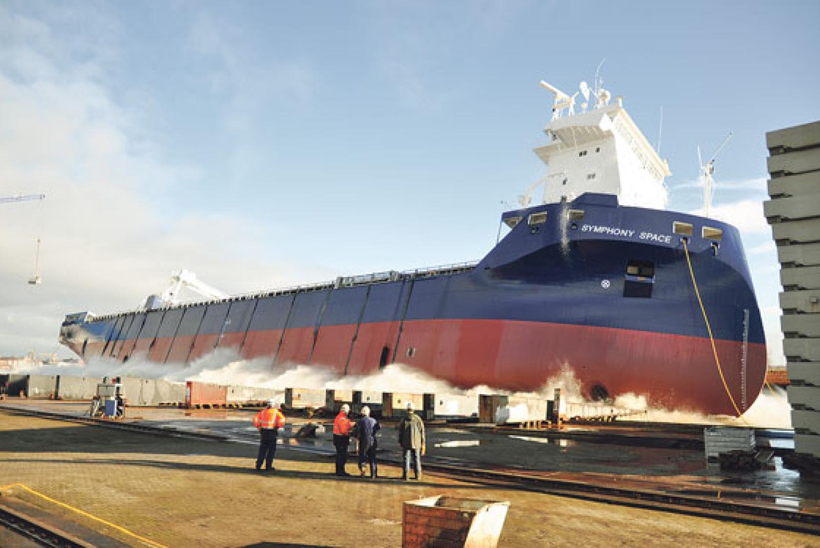 Mit der »Symphony Space« lief bei der Ferus Werft am Freitag der letzte Neubau einer Serie von sechs Schiffen für die Reederei Symphony Shipping bei der Ferus Smit-Werft in Leer vom Stapel.