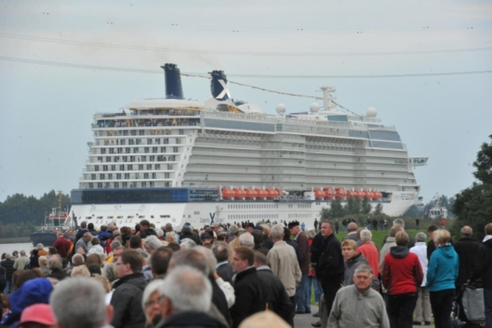 Dreimal ertönte das Signalhorn der »Celebrity Reflection« gestern Nachmittag an der Kaimauer der Meyer Werft. Dann fuhr das riesige Schiff auf der Ems rückwärts Richtung Nordsee.
