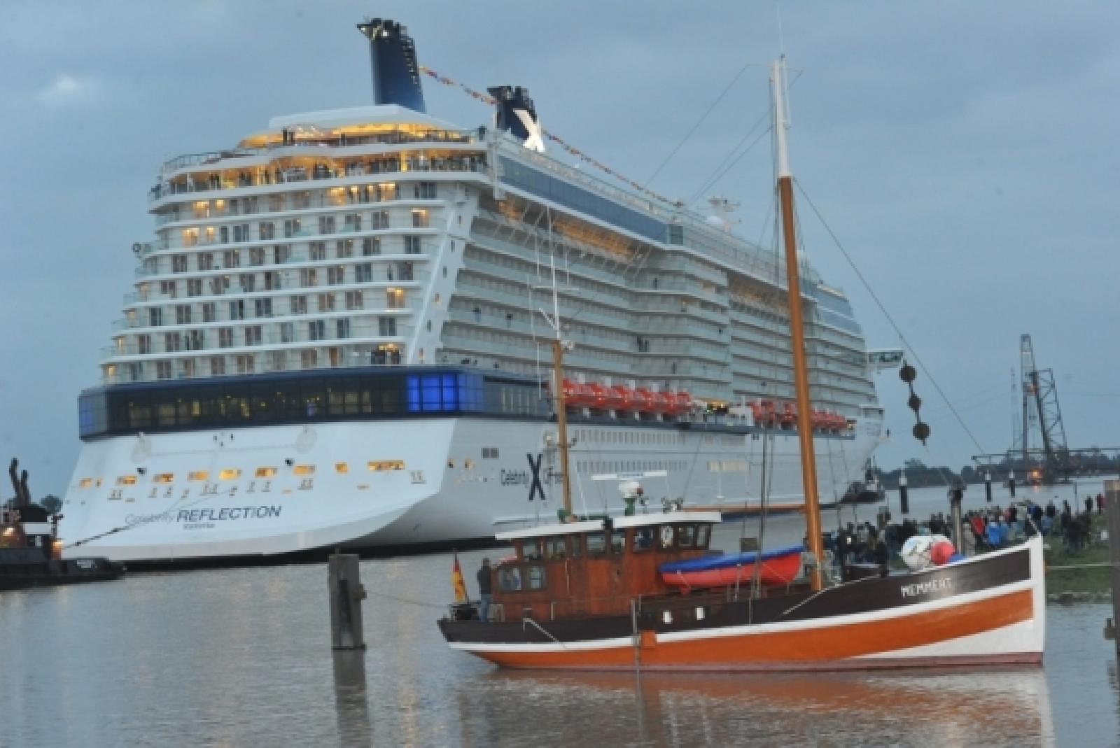 Das neue Kreuzfahrtschiff der Papenburger Meyer Werft hat die Emspassage gut hinter sich gebracht und gestern Abend nach einer Erprobungsfahrt in der Nordsee im niederländischen Eemshaven festgemacht.