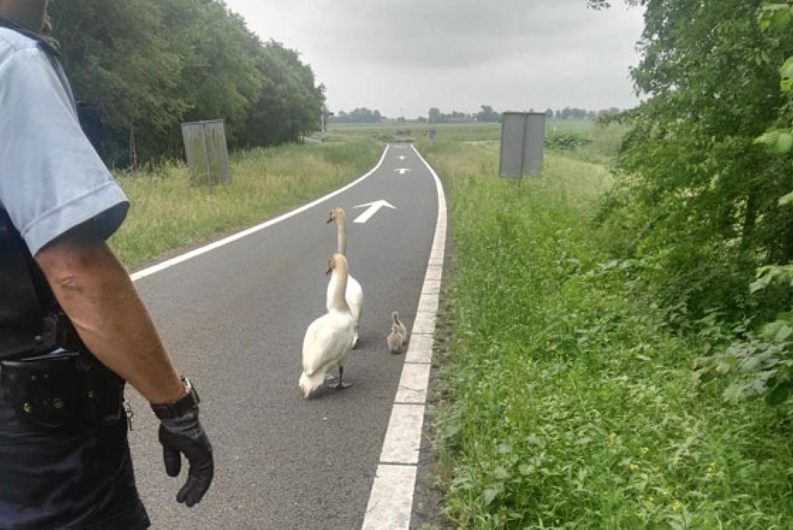 Das geht zu Herzen: In einem grenzüberschreitenden Einsatz an der deutsch-niederländischen Grenze hat eine Streife der Bundespolizei einer orientierungslosen Schwanenfamilie offenbar das Leben gerettet. Die Schwaneneltern und ihre drei Küken hatten sich auf die Autobahn verirrt.