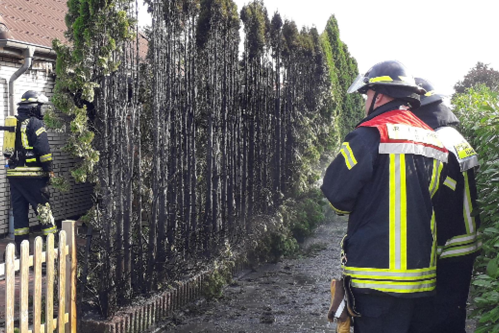 Gasbrenner setzt Hecke in Flammen