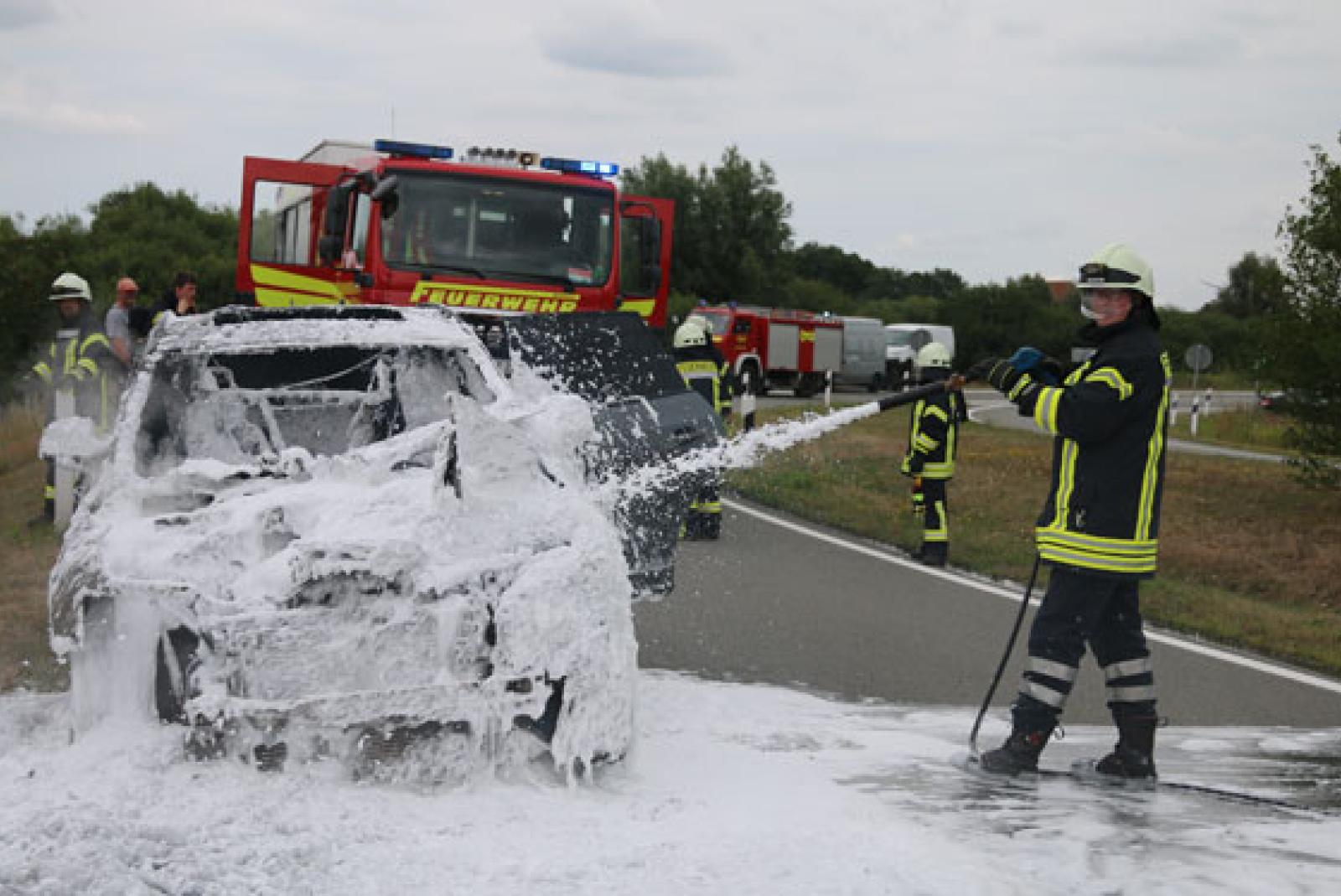 Am Mittwochmittag war die Freiwillige Feuerwehr Holtgaste wegen des Fahrzeugbrandes alarmiert worden, wie Einsatzleiter Enno Janß...