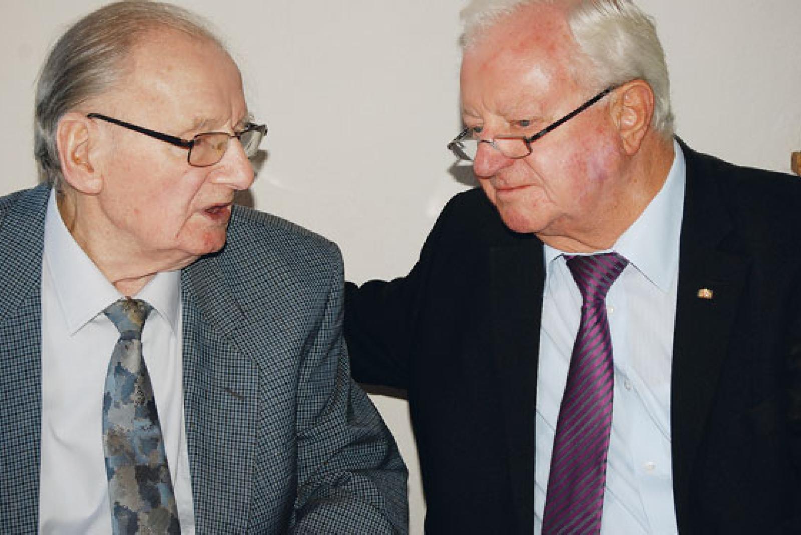 »Unsere Demokratie lebt vom Einsatz ihrer Bürger. Sie sind dafür ein überzeugendes Beispiel.« Rudolf Seiters (rechts), bis 2002 Bundestagsabgeordneter der CDU für den Wahlkreis Unterems, würdigte gestern mit Eildert Meyer aus Bunde ein Urgestein der Christdemokratischen Union ...