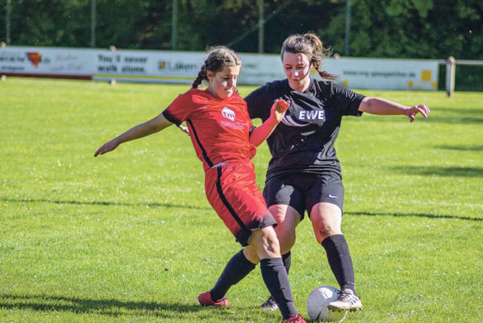 Neele Geyken (links) traf als einzige für den SV Ems Jemgum. © Archivfoto: Ostendorp