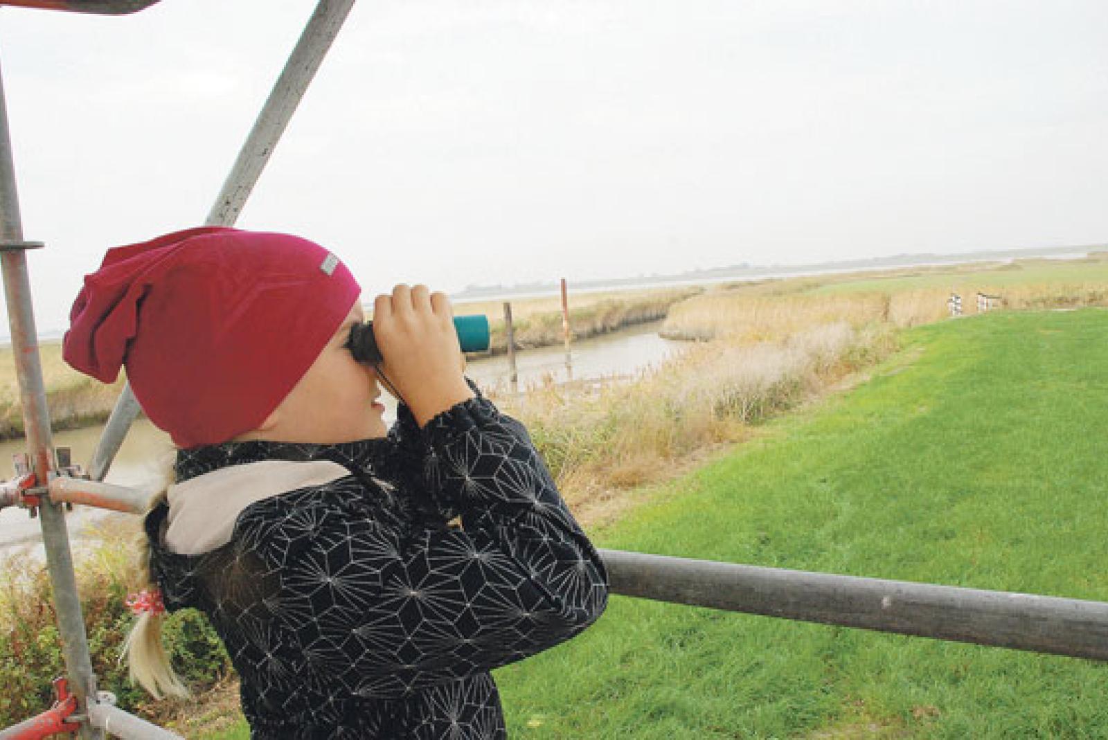 Die achtjährige Ruby aus Leerhafe bei Wittmund hatte heute ihr 10x25-Fernglas mitgebracht, um mit ihrer Mutter anlässlich des NABU-Vogelfestivals am Ziegeleimuseum in Midlum viele unterschiedliche Vögel zu sehen. Doch außer Gänsen am 250 Meter entfernten ...