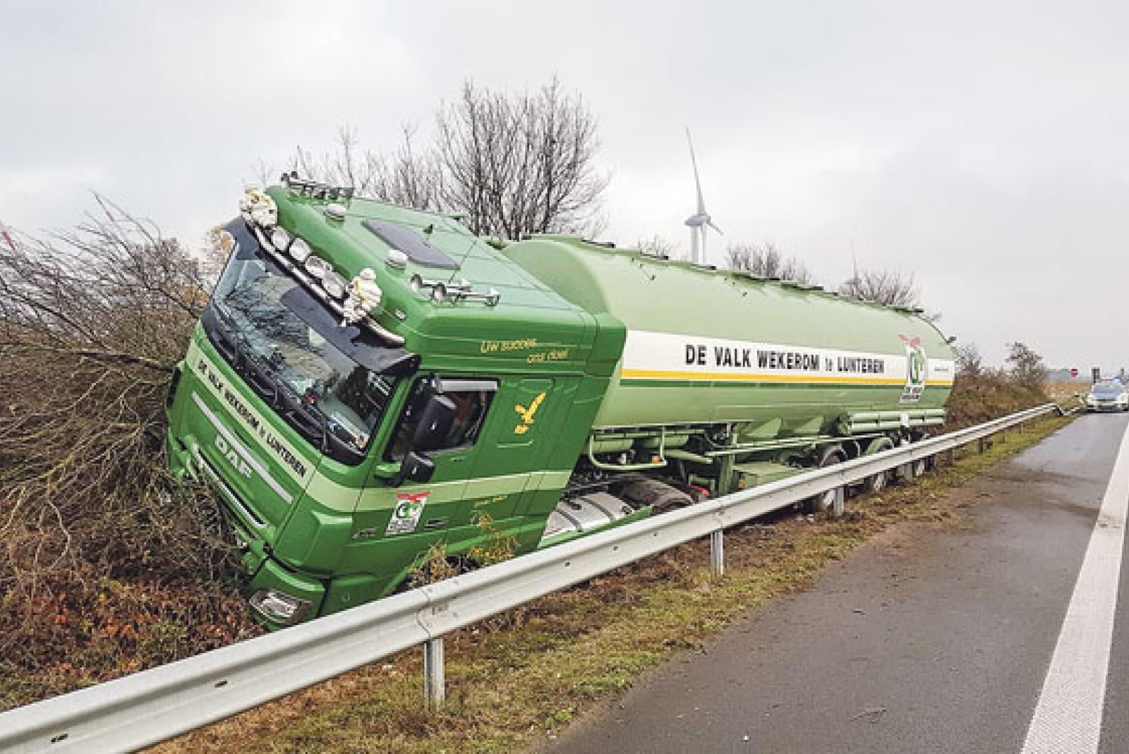 Der niederländische Tanklastzug geriet kurz hinter dem Emstunnel von der Fahrbahn der Autobahn 31 in die Berme. Um 16 Uhr begann die Bergung.