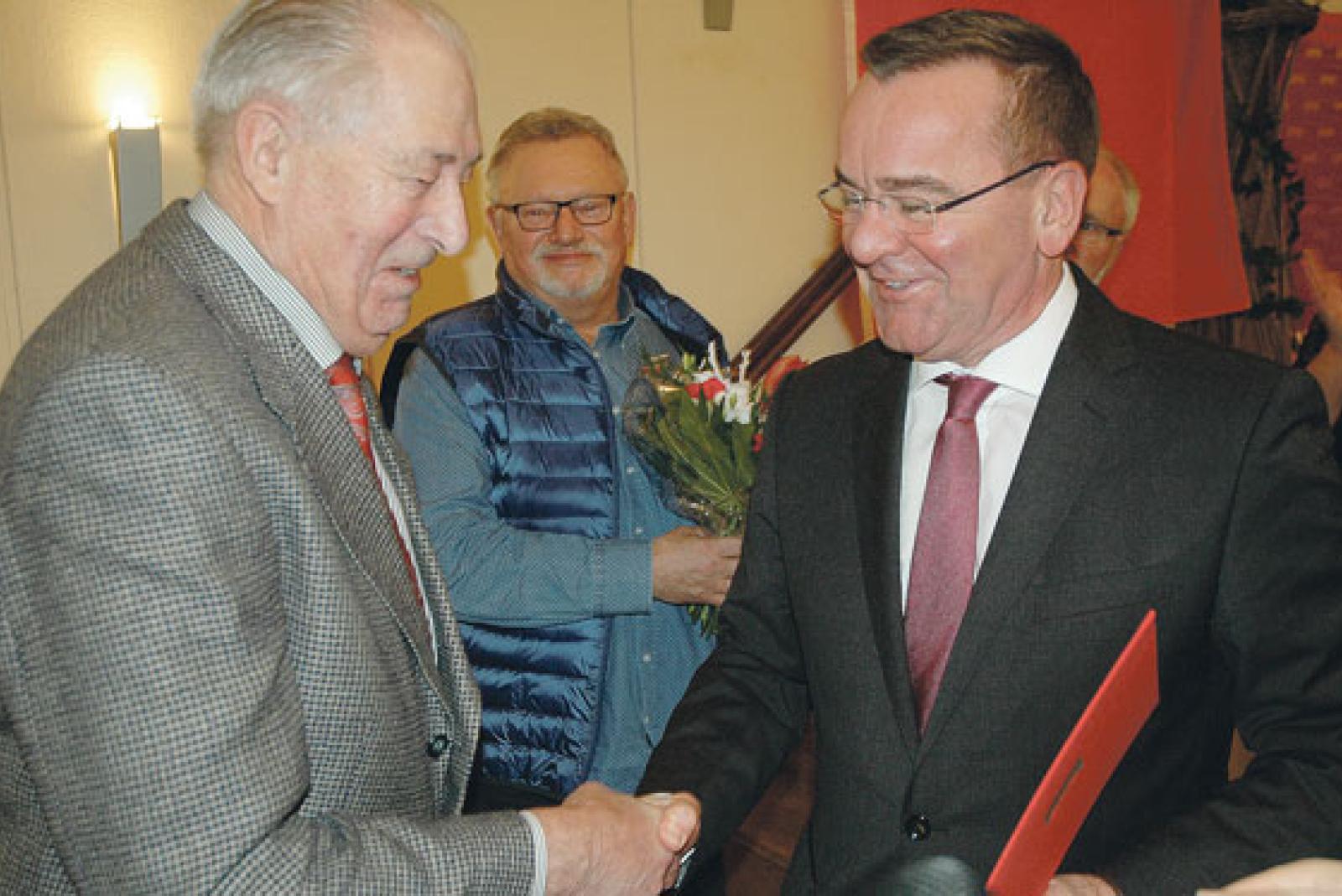 Die Feier zum 100. Geburtstag des SPD-Ortsvereins Bunde war auch ein Anlass, treue Mitglieder der Partei zu ehren. Niedersachsens Innenminister Boris Pistorius übernahm diese Aufgabe und überreichte Ehrenurkunden an Sander Sanders (50 Jahre), Gerhold Otten, Friedrich Meyer (beide 40 Jahre), Helma Timmer, Ernst ...