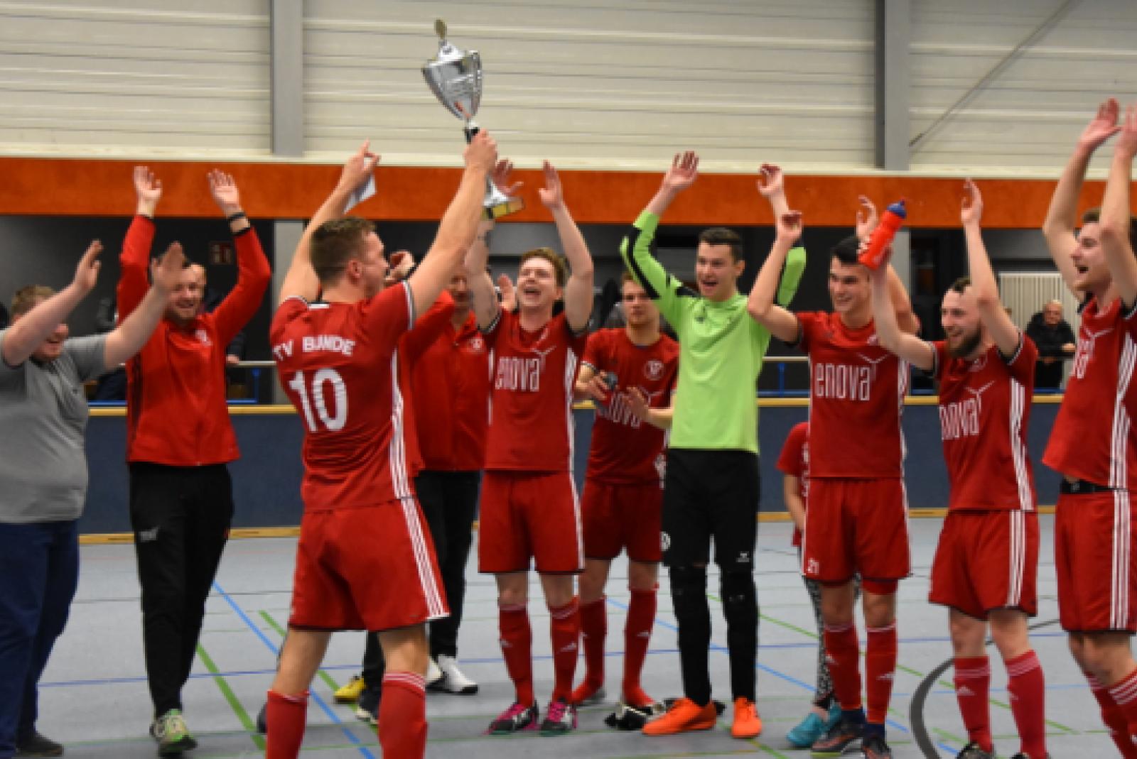 Die Bezirksligamannschaft des TV Bunde hat sich am Samstagabend den Rheiderländer Hallenpokal gesichert. Im Finale gegen die SG Heidjer SV/TuS Holthusen aus der Ostfrieslandklasse B setzten sich die Bunder in der eigenen Mölenland-Halle mit 7:0 durch. Joost Diepen ...