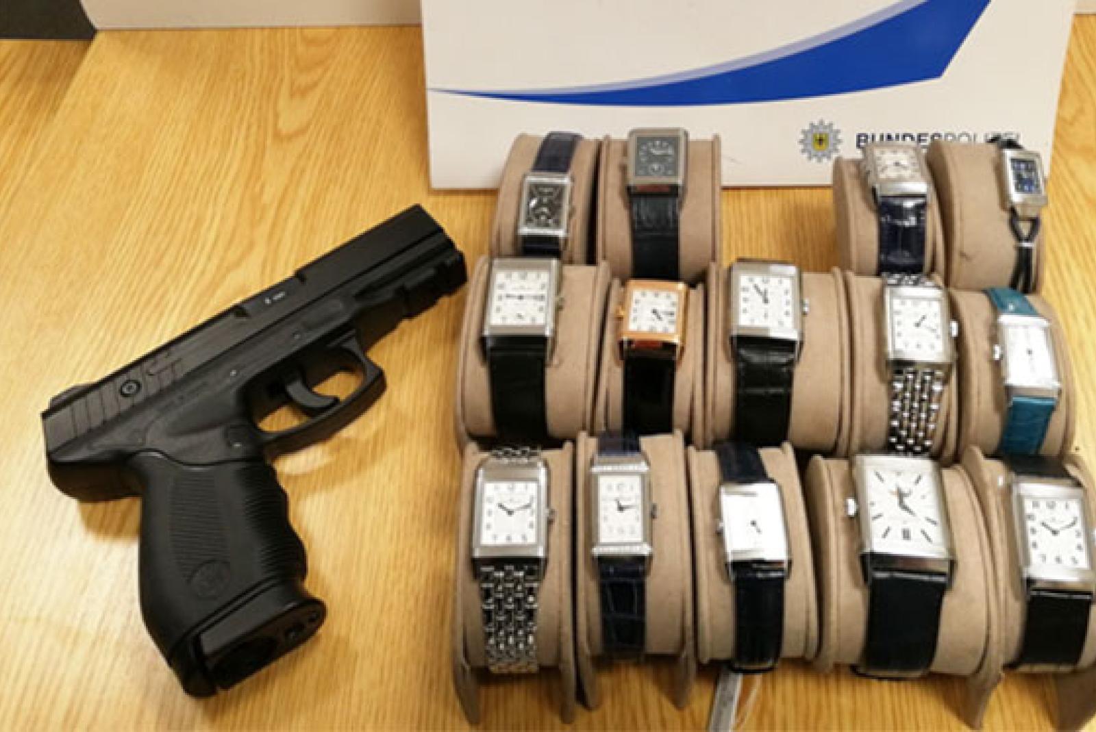 Diese Softair-Pistole sowie diverse hochwertige Uhren aus einem Überfall fanden Beamte der Bundespolizei bei der Kontrolle eines 34-Jährigen in Bunde.