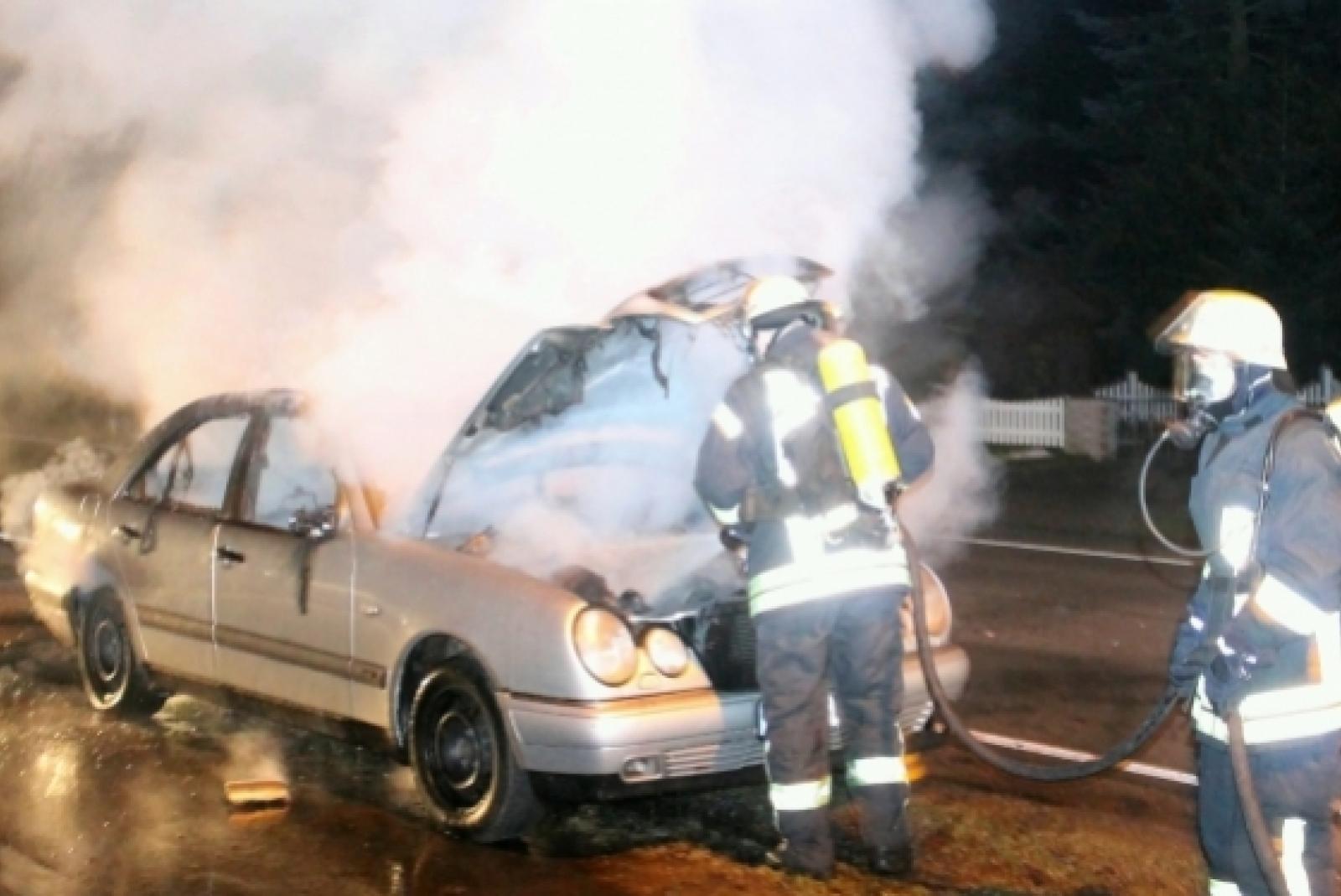 Ein brennender Mercedes auf der Bundesstraße 436 ...