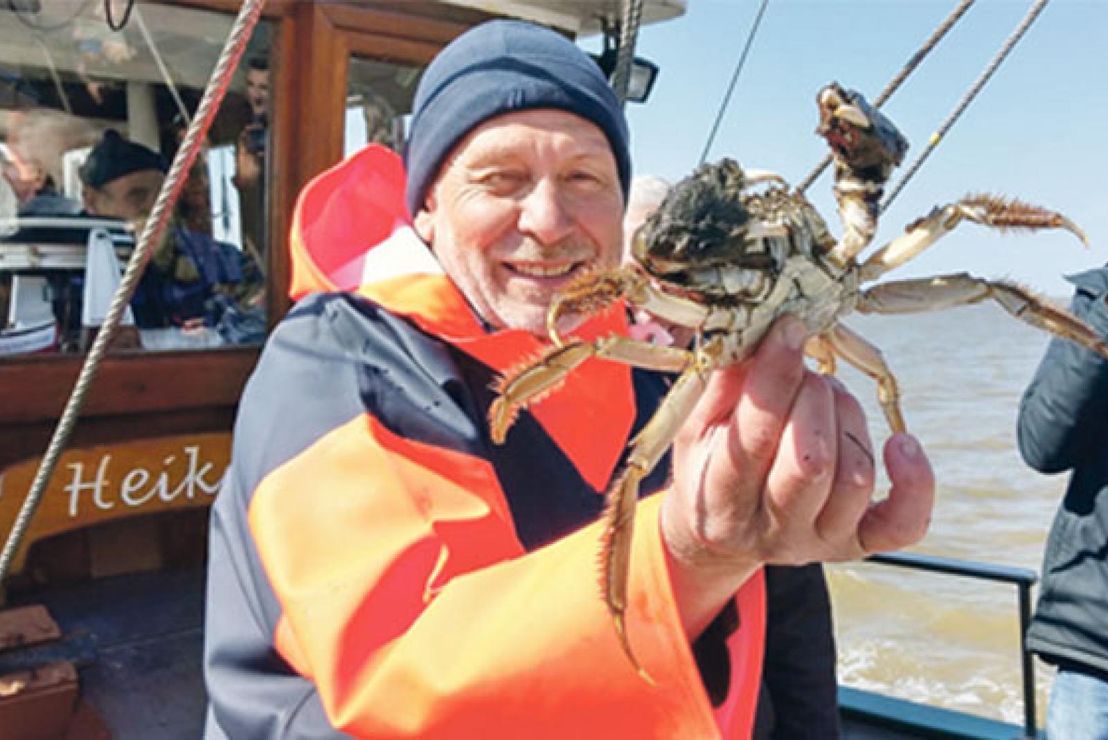 Die berühmten Ditzumer Krabben sind als rotes Gold vom Dollart bekannt und bei Feinschmeckern sehr geschätzt. Eine kulinarische Delikatesse ist auch die Chinesische Wollhandkrabbe, die jetzt Wilfried Voß, Kapitän des Kutters »Heike« im Netz fand. Die »groß...