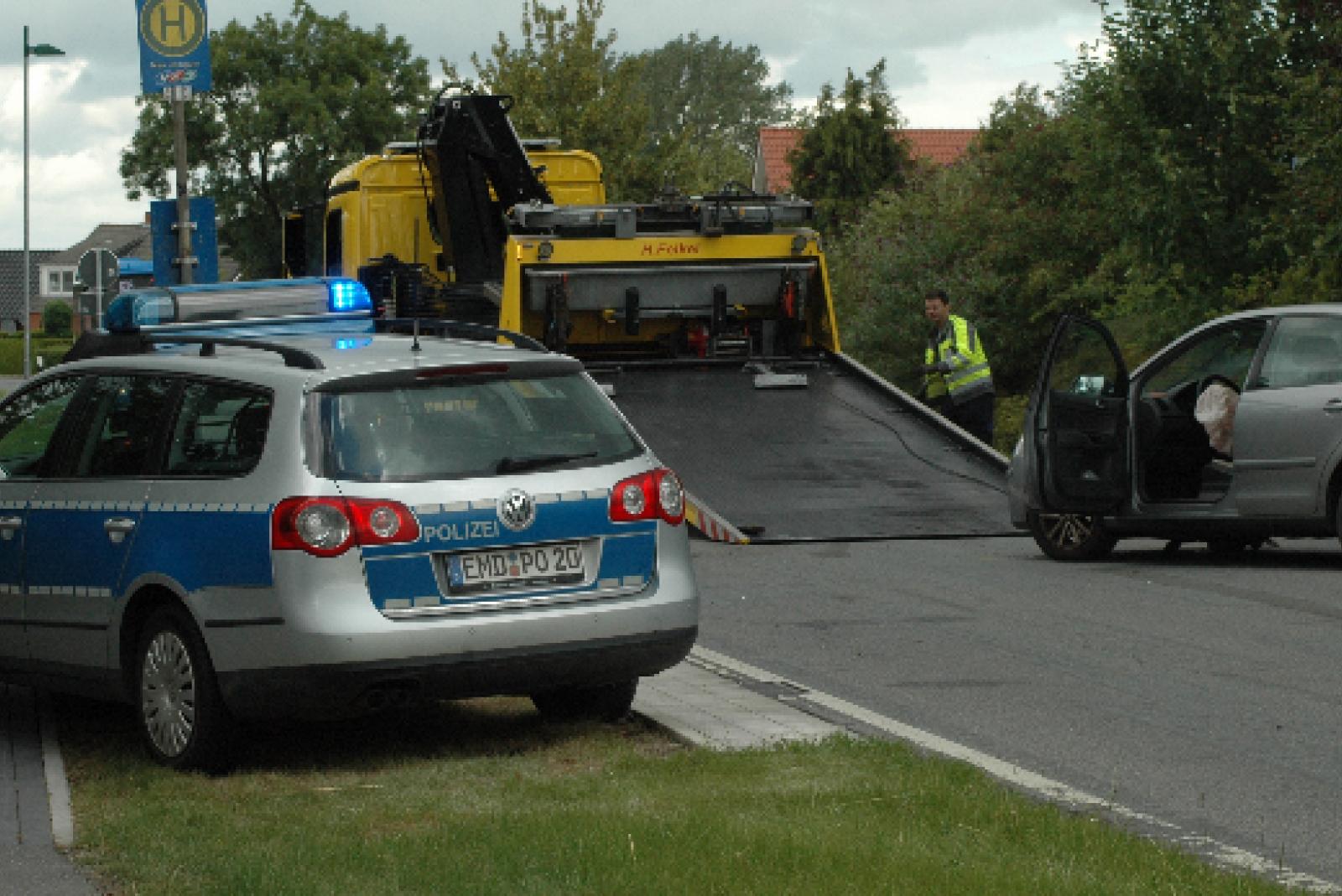 Nach einem Unfall auf der Hofstraße in Jemgum, bei dem ein Autofahrer leicht verletzt wurde, war die Straße heute während der Bergung der beiden beteiligten Fahrzeuge voll gesperrt.