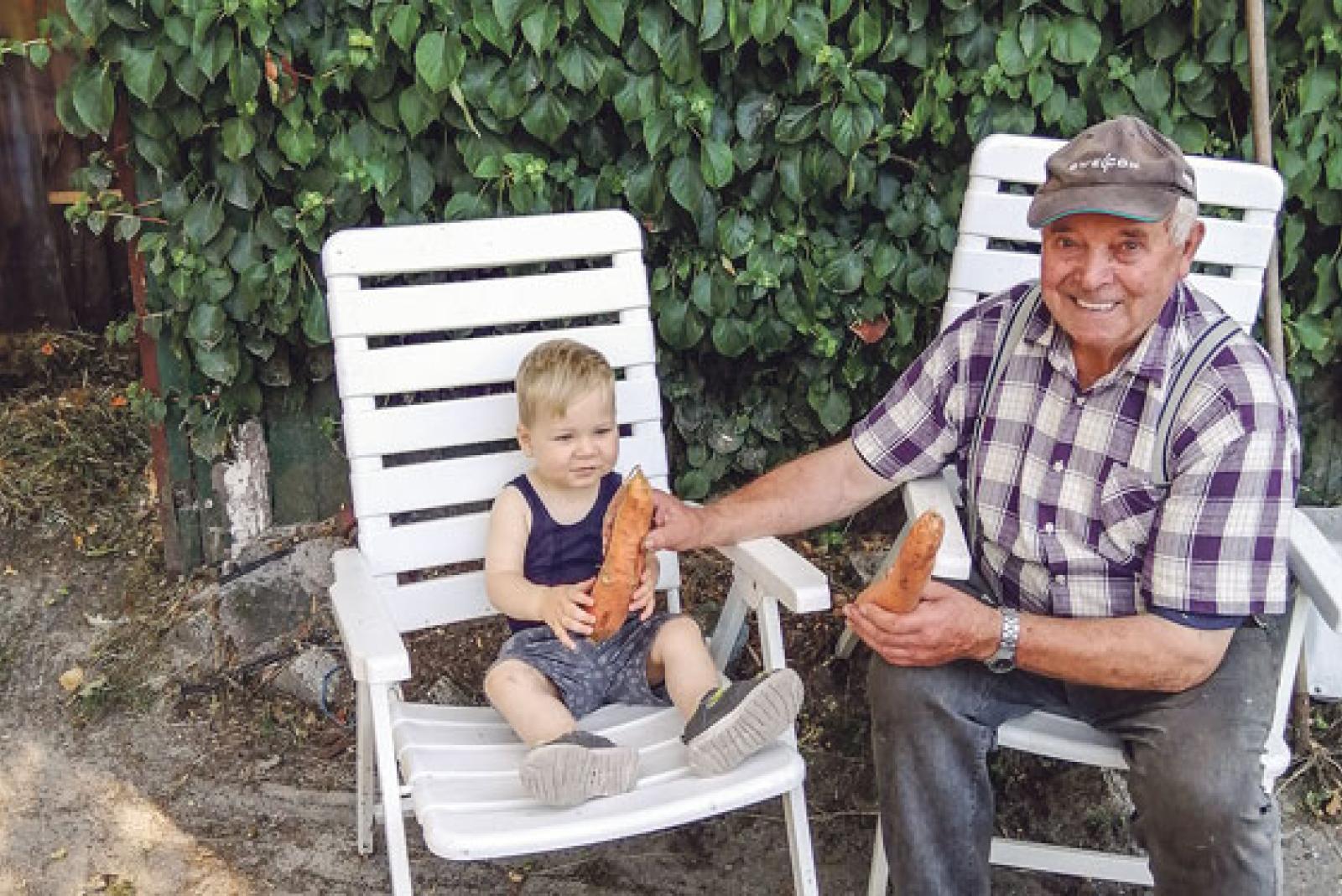 Urenkel Keno staunt über riesige Möhren