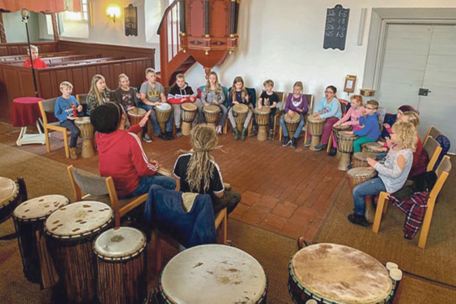 Ungewohnte Klänge ertönten in der vergangenen Woche aus der Kirche in Midlum. Ulf Heße aus Iserlohn probte mit 17 Kindern für einen Trommelgottesdienst der evangelisch-reformierten Kirchengemeinde.