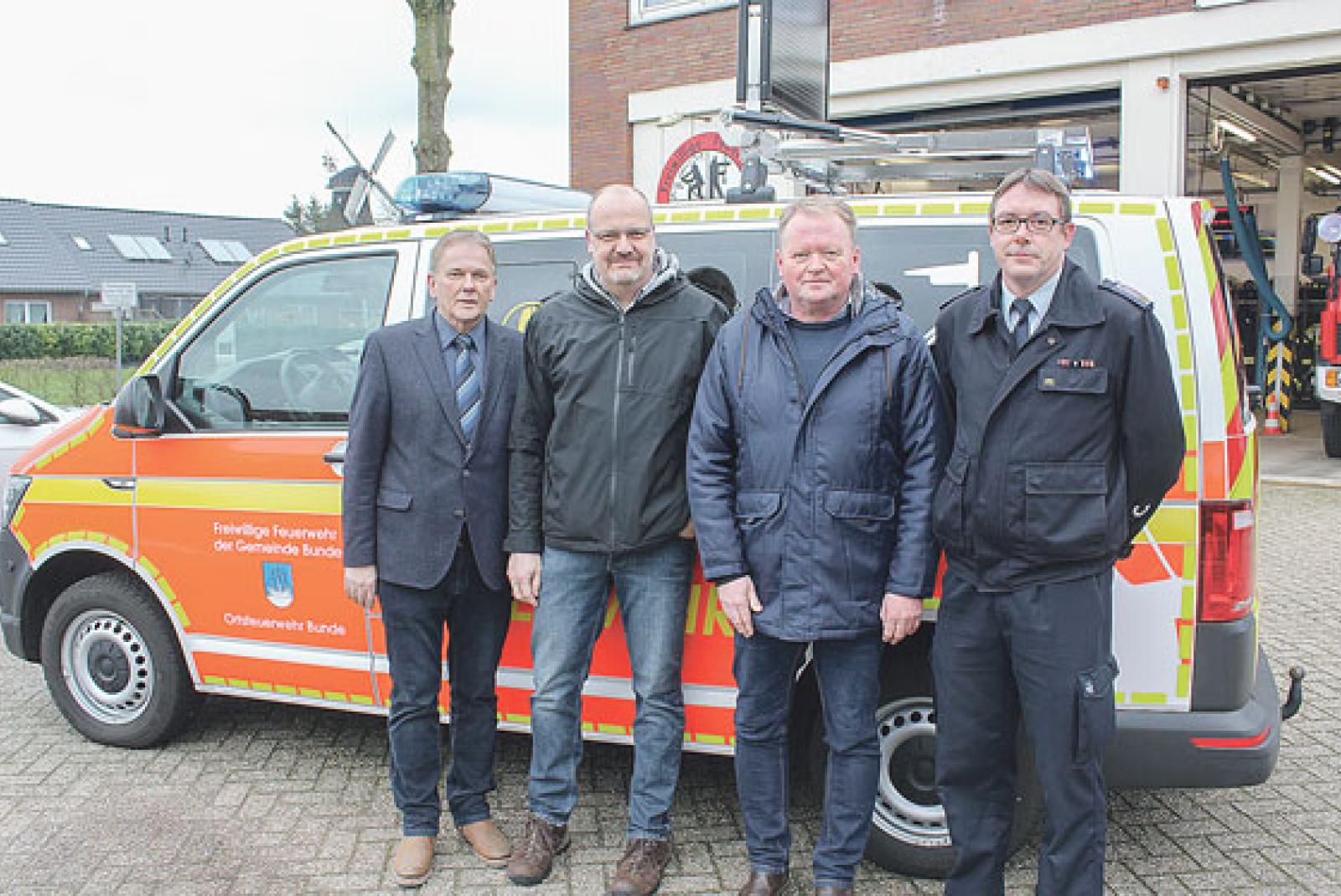 Die Freiwillige Feuerwehr in Bunde verfügt seit Kurzem über einen neuen Mannschaftstransportwagen (MTW) mit einer auf dem Dach montierten Verkehrszeichen-Anlage. Gestern Nachmittag erfolgte die offizielle Übergabe. »Der Wagen und die Anlage waren bereits im Einsatz und haben sich bewä...