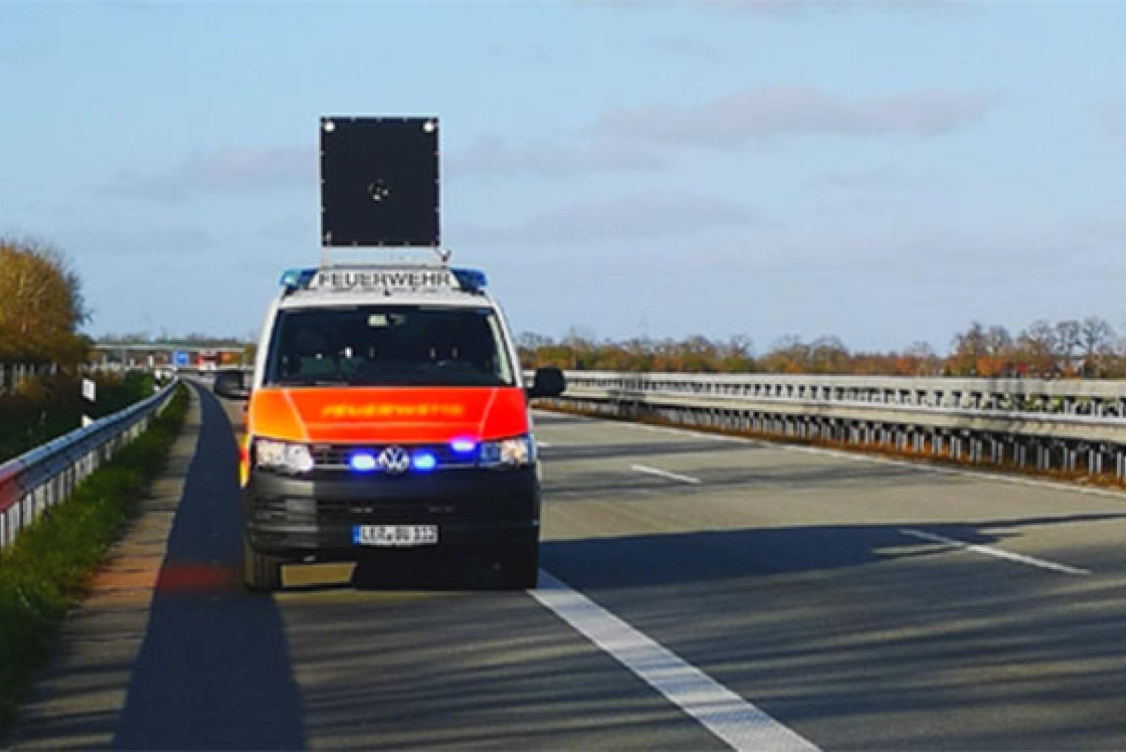 Der neue Mannschaftstransporter der Feuerwehr Bunde ist ausgestattet mit einer fest montierten Verkehrswarntafel in Vollmatrix-LED-Technik auf dem Dach. Damit erfolge die Absicherung der Einsatzstelle.