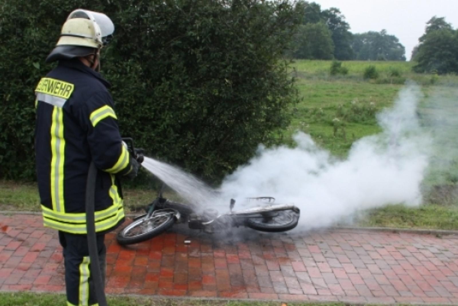 Mofa steht während der Fahrt in Boen plötzlich in Flammen