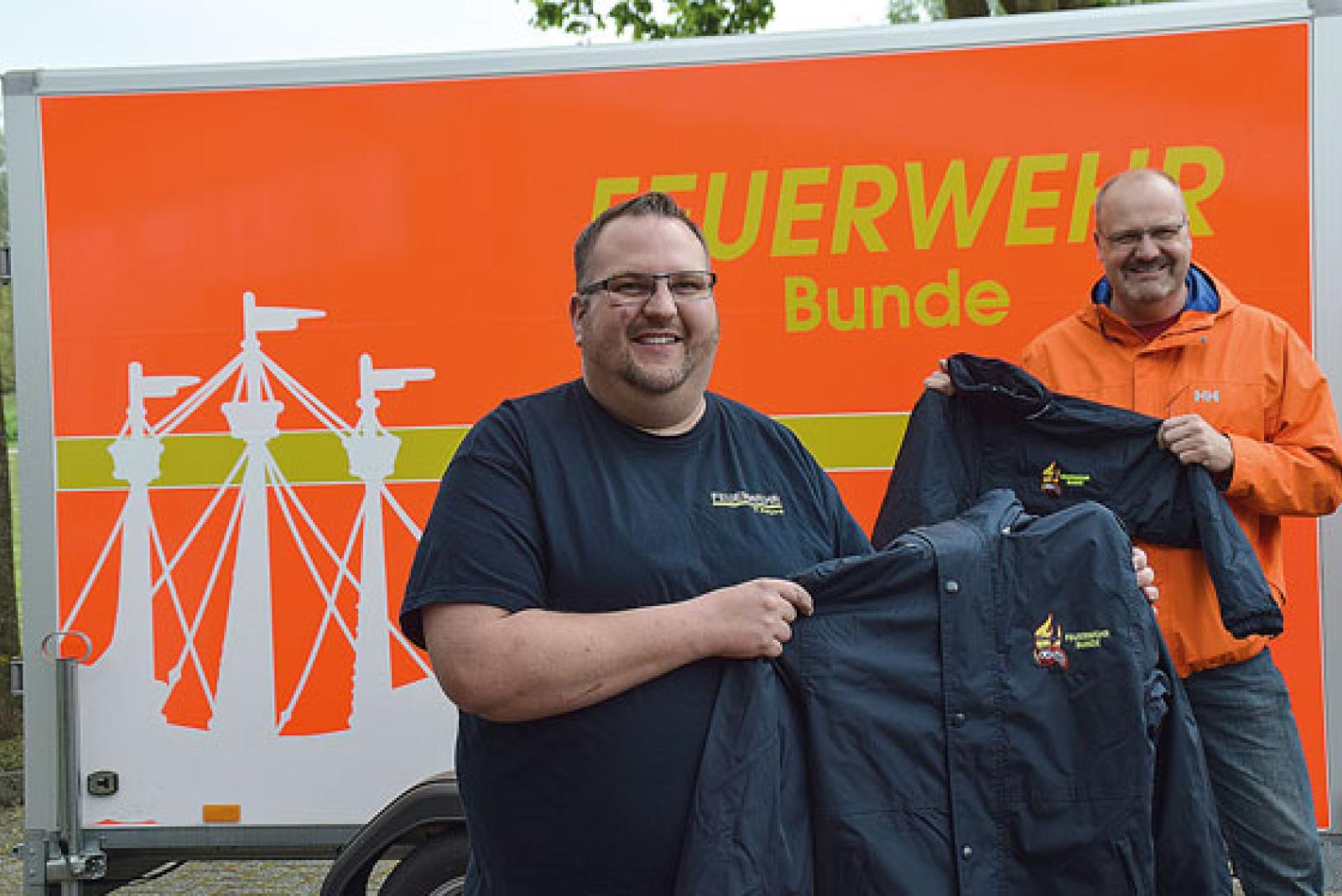 Der Förderverein der Bunder Feuerwehr hat jetzt dem Feuerwehrnachwuchs warme Regenjacken im Gesamtwert von 720 Euro übergeben.