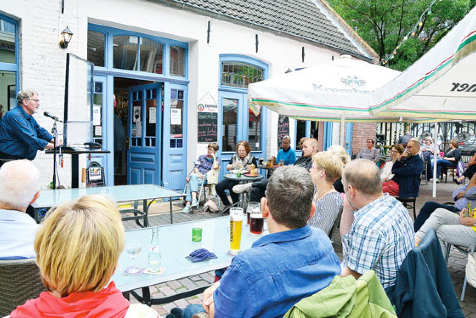 Die musikalische Lesung von Peter Gerdes und Albertus Akkermann konnte jetzt Dank Corona nur unter freiem Himmel stattfinden, konkret im Innenhof des Cafés »Tatort Taraxacum«. Und so freuten sich der Autor und der auf Borkum lebende Folk-Musiker, dass es ...