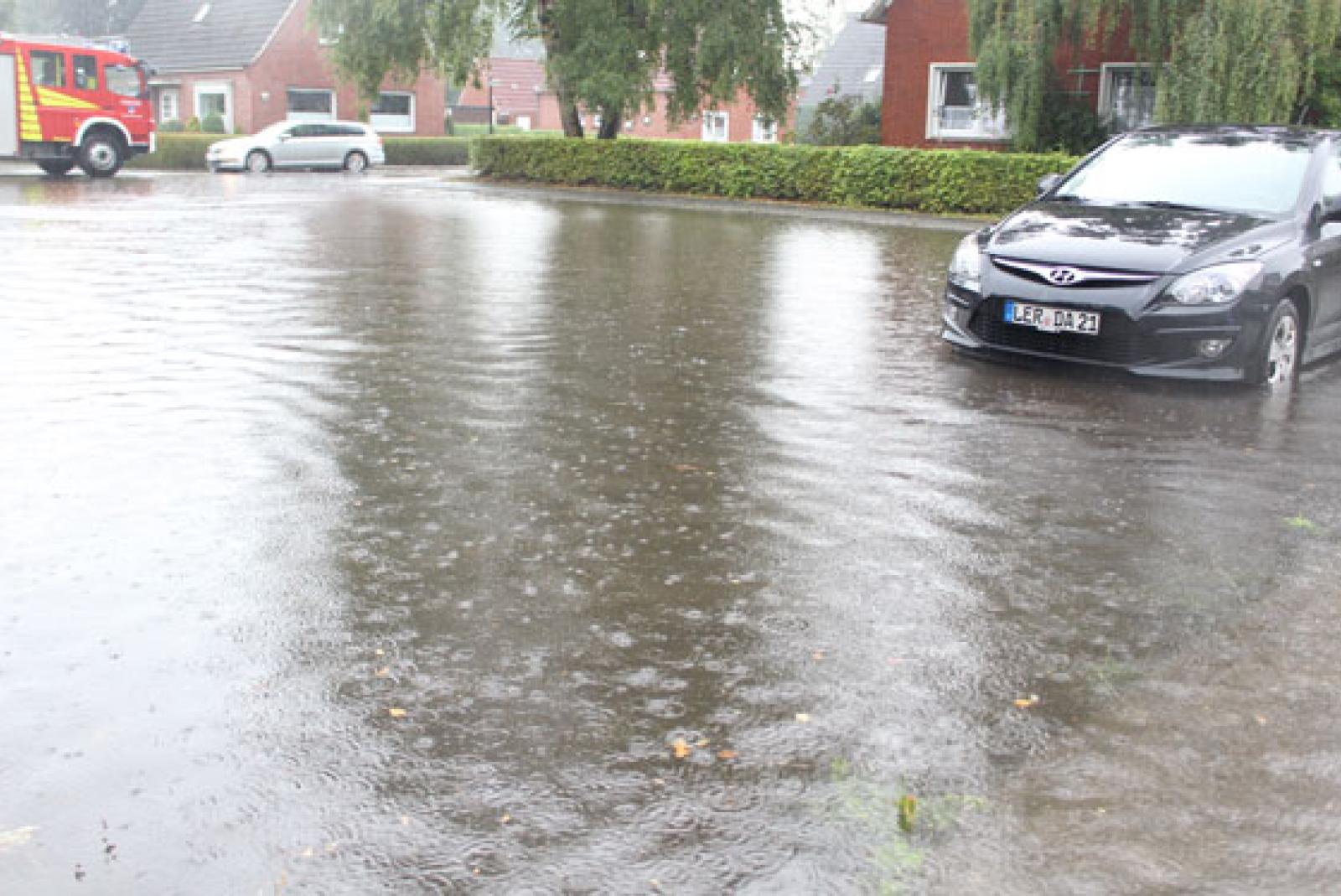 Die Abwasserkanäle in der Weidenstraße konnte die Wassermengen nicht schnell genug aufnehmen.