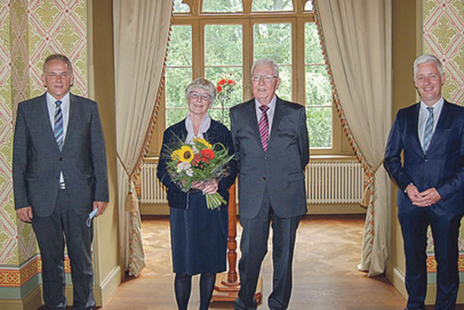 Mit dem Bundesverdienstkreuz hat Landrat Matthias Groote (rechts) gestern Jan-Dieter van Hoorn aus Bunde ausgezeichnet. Im Festsaal des Schlosses Evenburg in Leer fand eine eher schlichte Zeremonie im Zeichen der Corona-Einschränkungen statt. »Es ist die erste Verleihung seit dem ...
