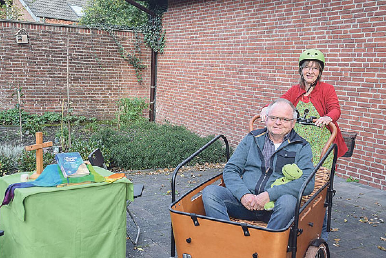 Schwester Carola Ist Franziskanerin. Eine Bibel bei einer Radtour im Gepäck zu haben, ist für sie also nicht unbedingt ungewöhnlich – aber sie hat auch einen klappbaren Altar dabei.