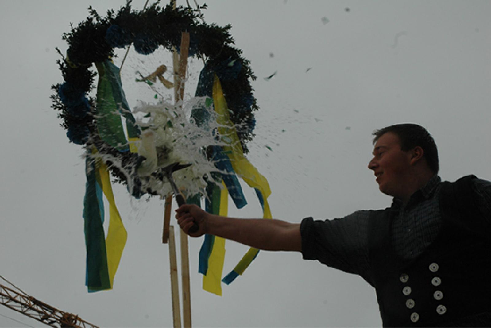 Rohbau steht und Richtkranz weht