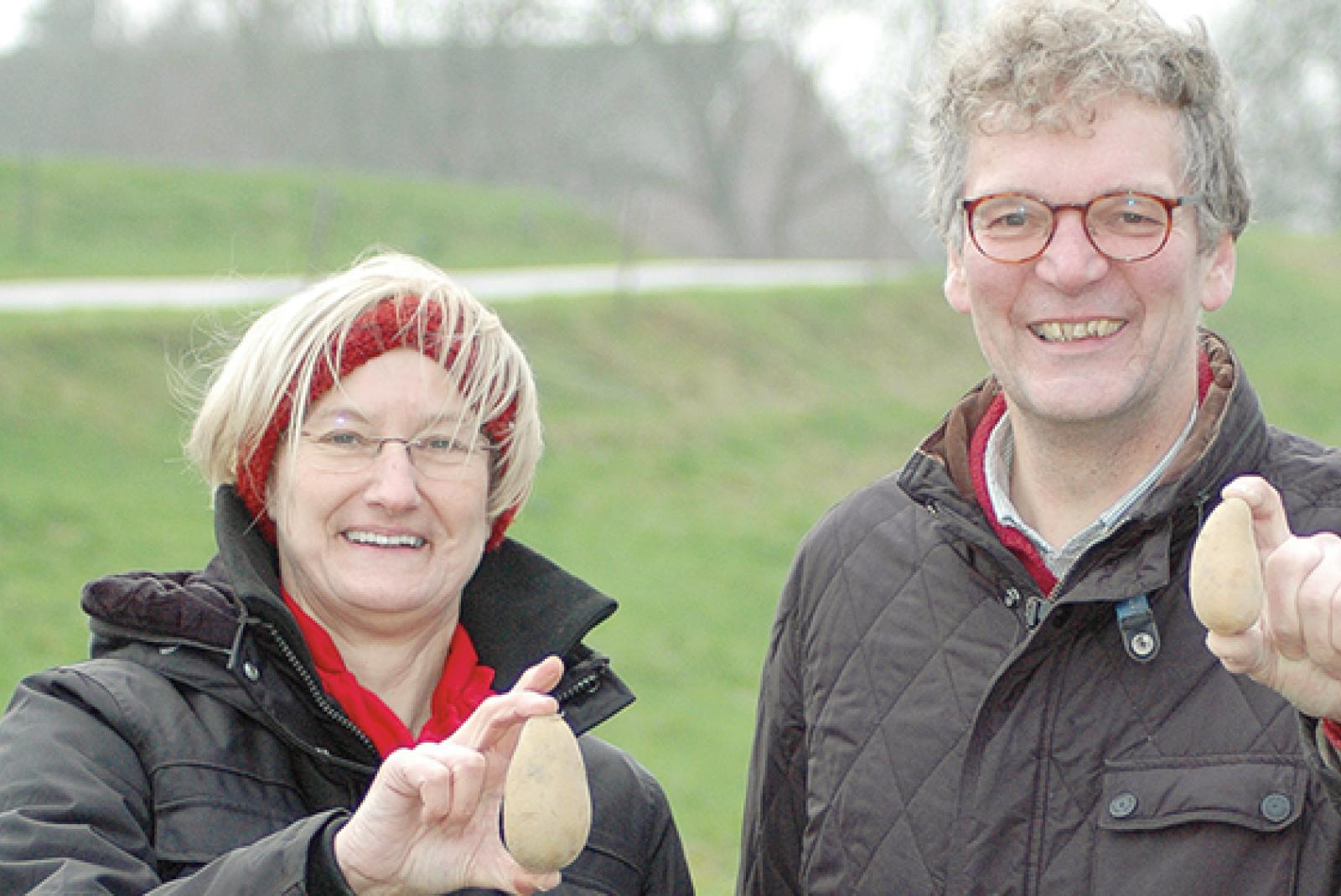 »Muuskes« heißt die Kartoffelsorte, von der Mechthild und Wilko de Boer aus Heinitzpolder hier zwei Exemplare präsentieren. Die kleinen Knollen haben oft ein spitzes Ende und erinnern mit ihrem Aussehen an Mäuse. Zugleich handelt es sich um ...