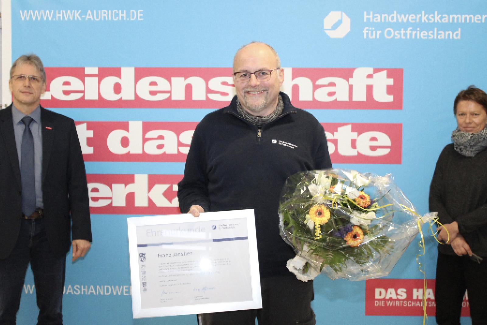 Franz Janshen aus Ditzumerverlaat hat allen Grund zur Freude. Der Maurermeister ist seit dem 1. Januar 1996 im Berufsbildungszentrum (BBZ) der Handwerkskammer für Ostfriesland (HWK) in Aurich als Lehrwerksmeister tätig. Somit feierte der Rheiderländer Anfang des Jahres nicht nur ...