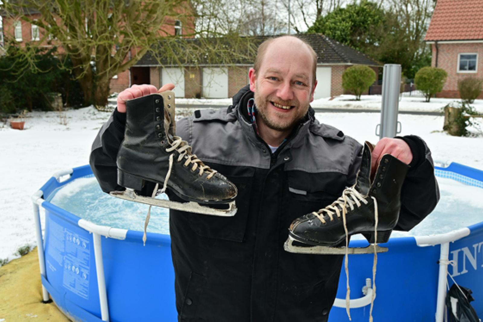 Schlittschuhläufer Harry Großpietsch dreht im eigenen Garten seine Runden