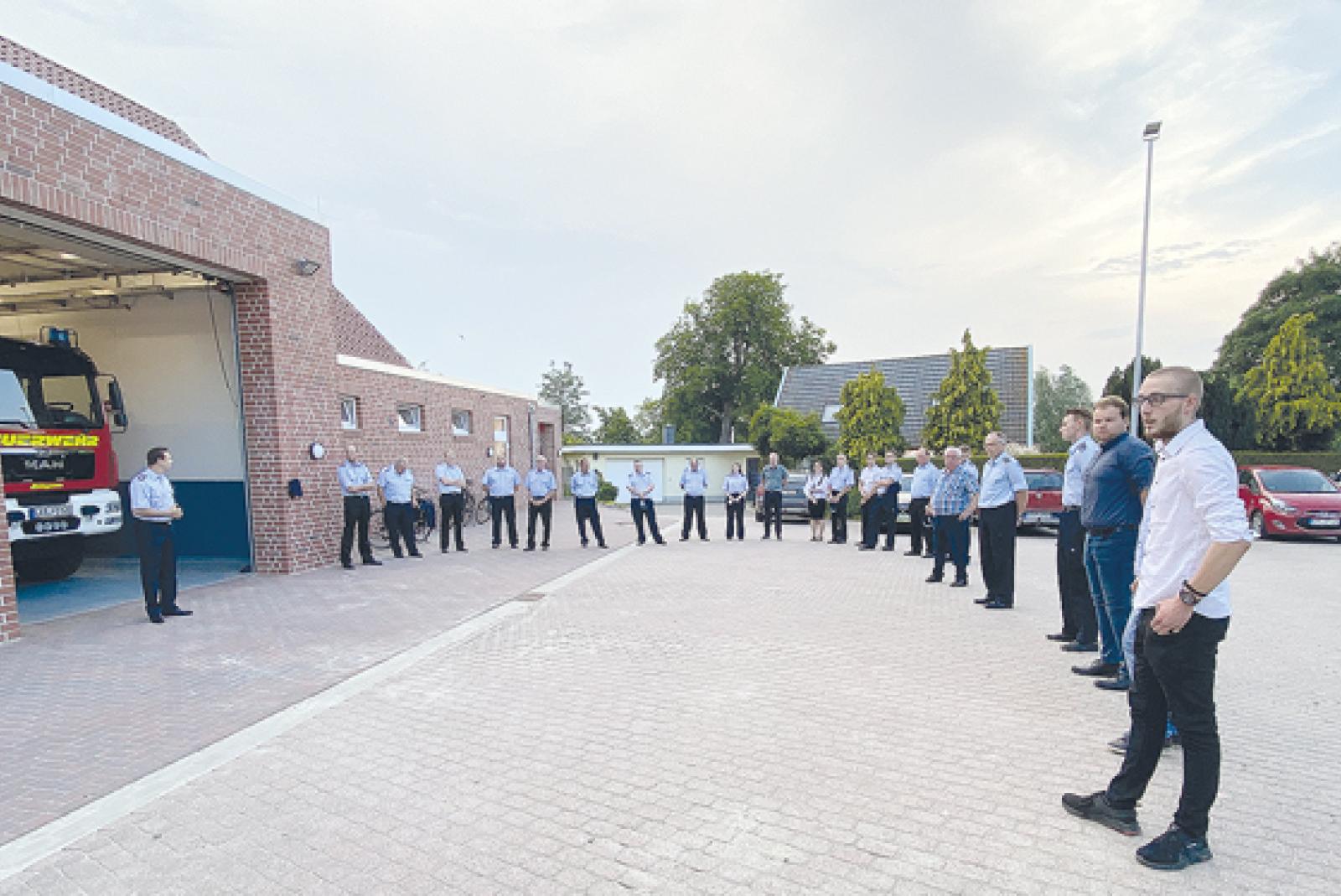 Die Mitglieder trafen sich draußen vor dem neuen Feuerwehrhaus